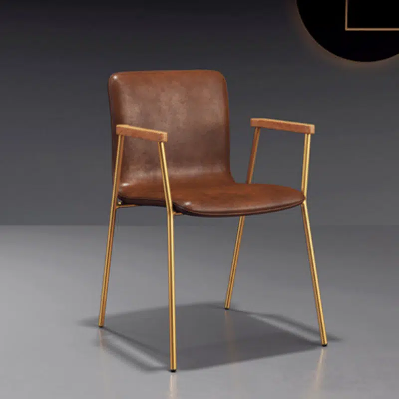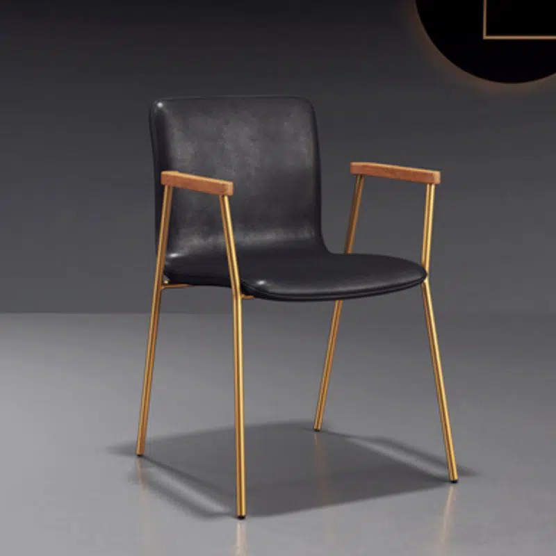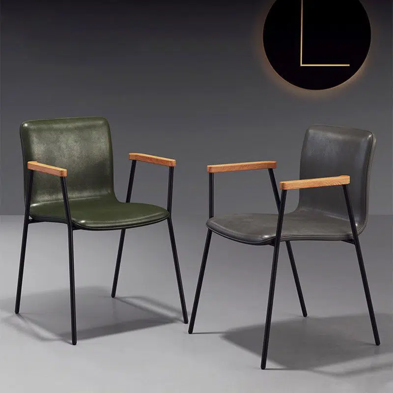 Contemporary Luxury Square Faux Leather Upholstered Dining Chair Backrest Armrest For Dining Room