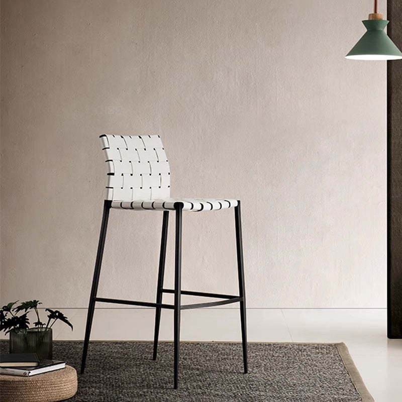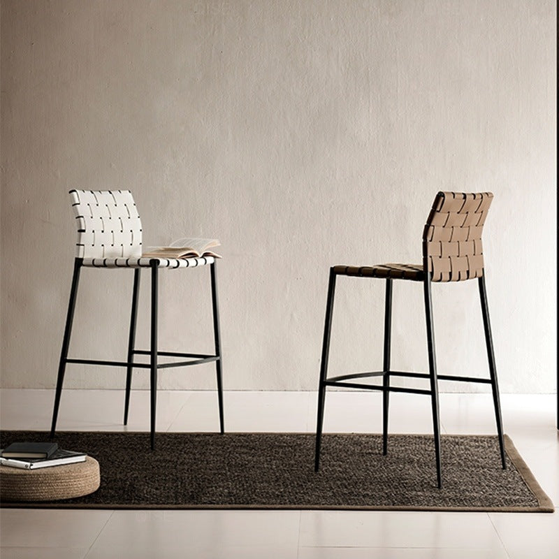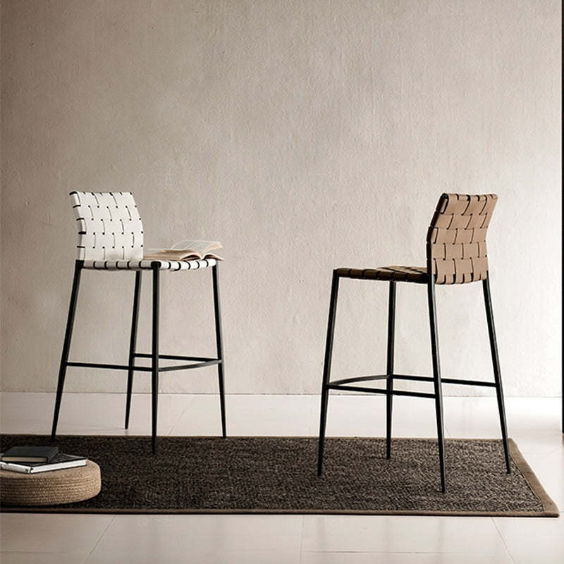 Contemporary Luxury Square Leather Metal Bar Stool Backrest Footrest For Dining Room