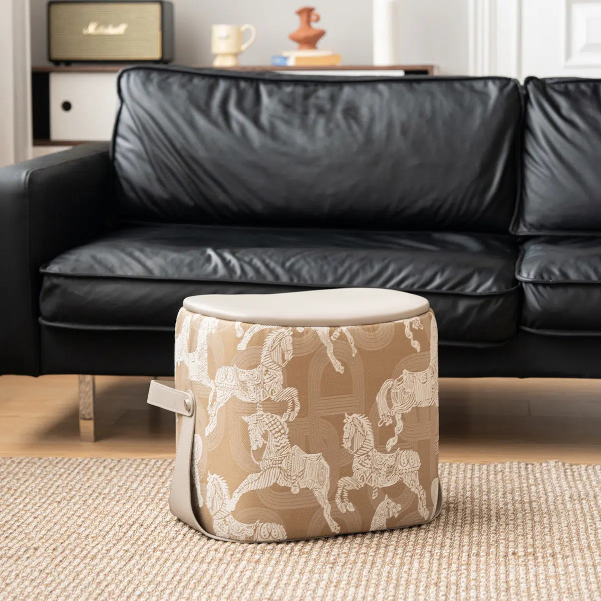 Contemporary Luxury Square Leather Pouf Footstool For Entryway