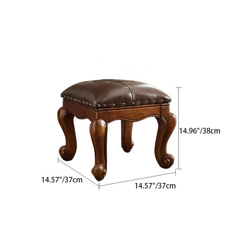 Contemporary Luxury Square Leather Upholstered Footstool For Entryways