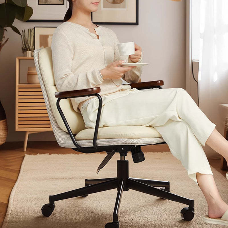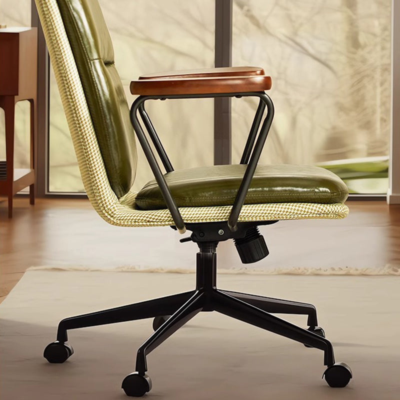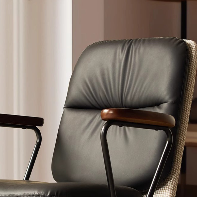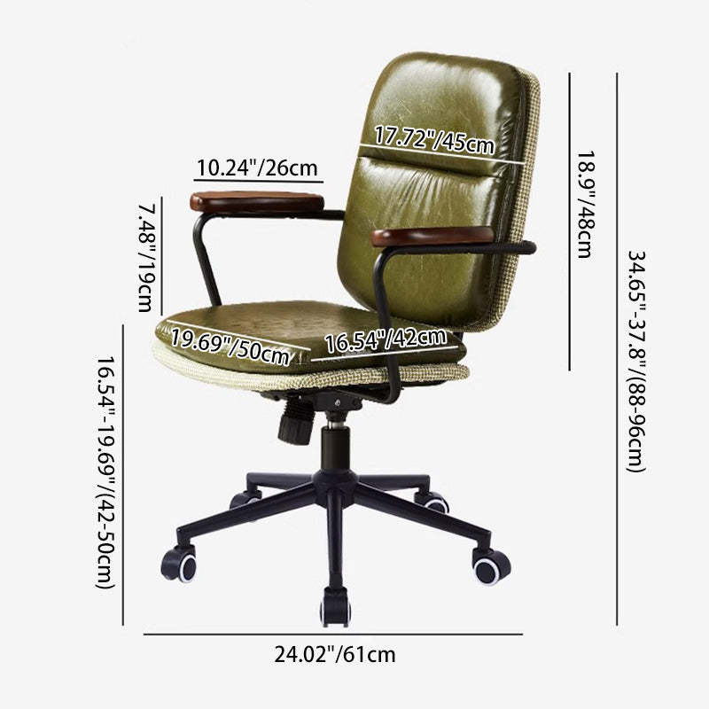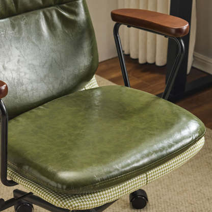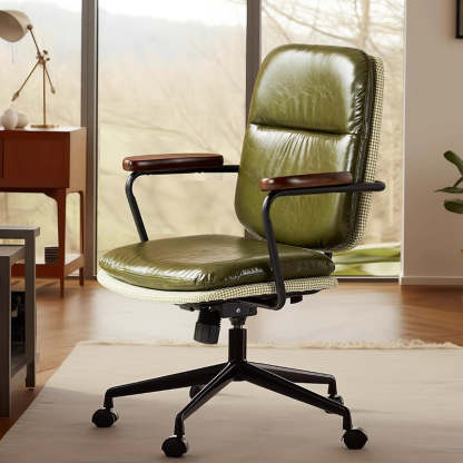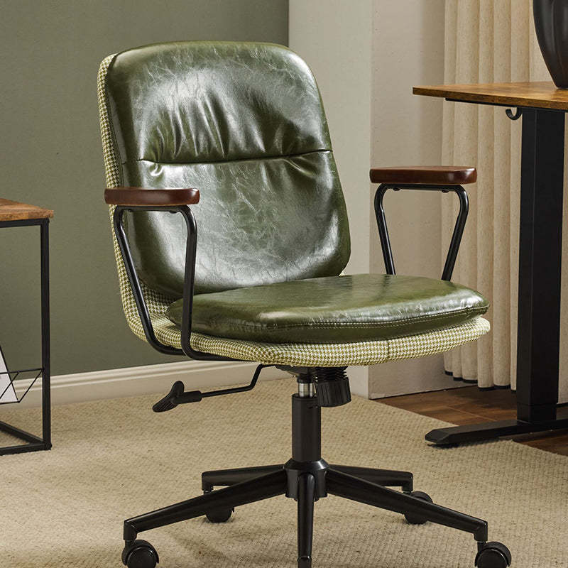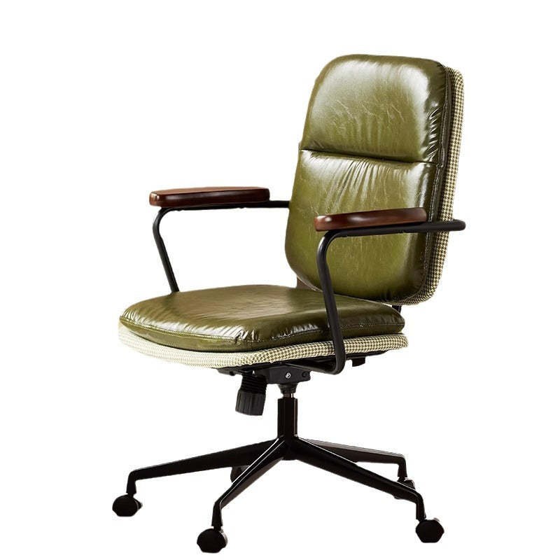 Contemporary Luxury Square Leather Upholstered Height Adjustable Swivel Desk Chair Backrest Armrest For Home Office