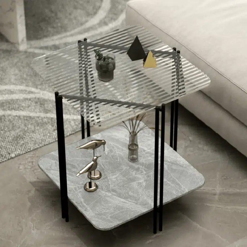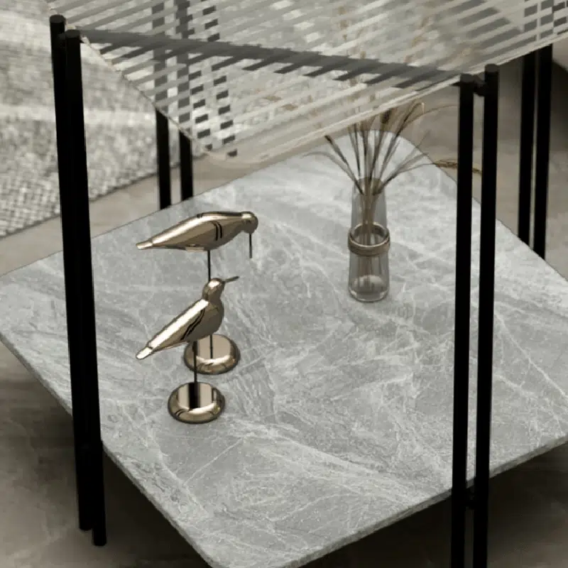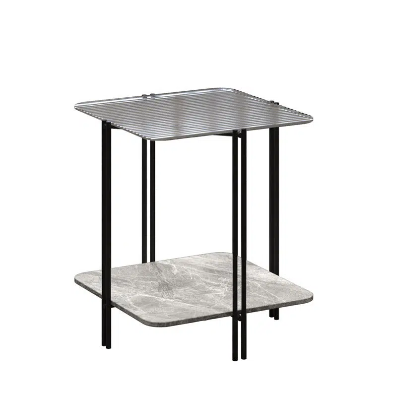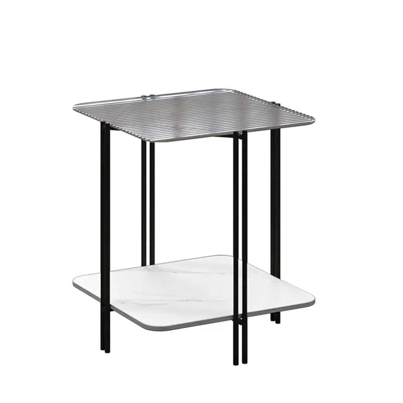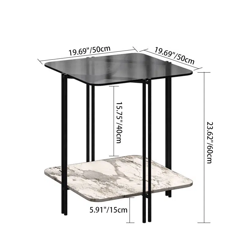 Contemporary Luxury Stone Panel Square Top Metal End Table 2-Tier Storage Shelves For Living Room