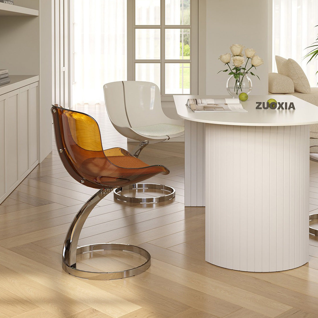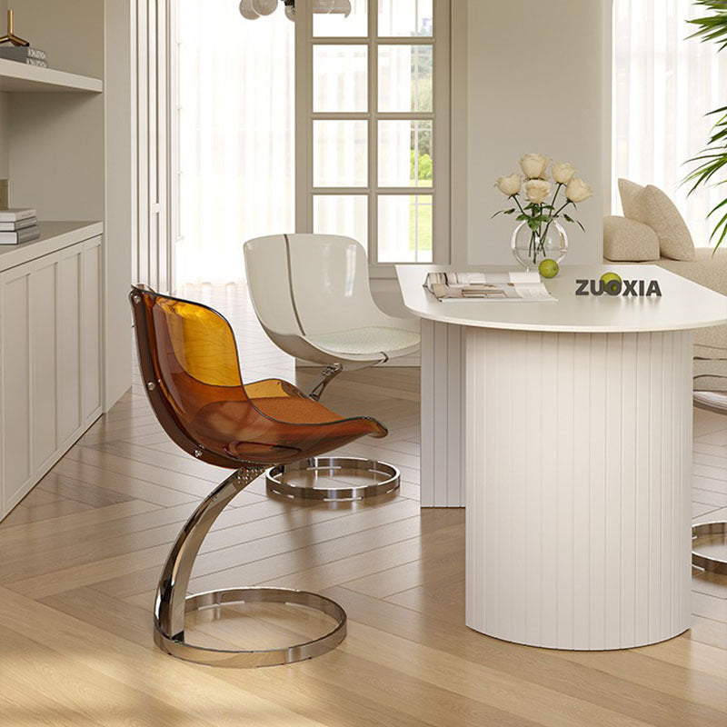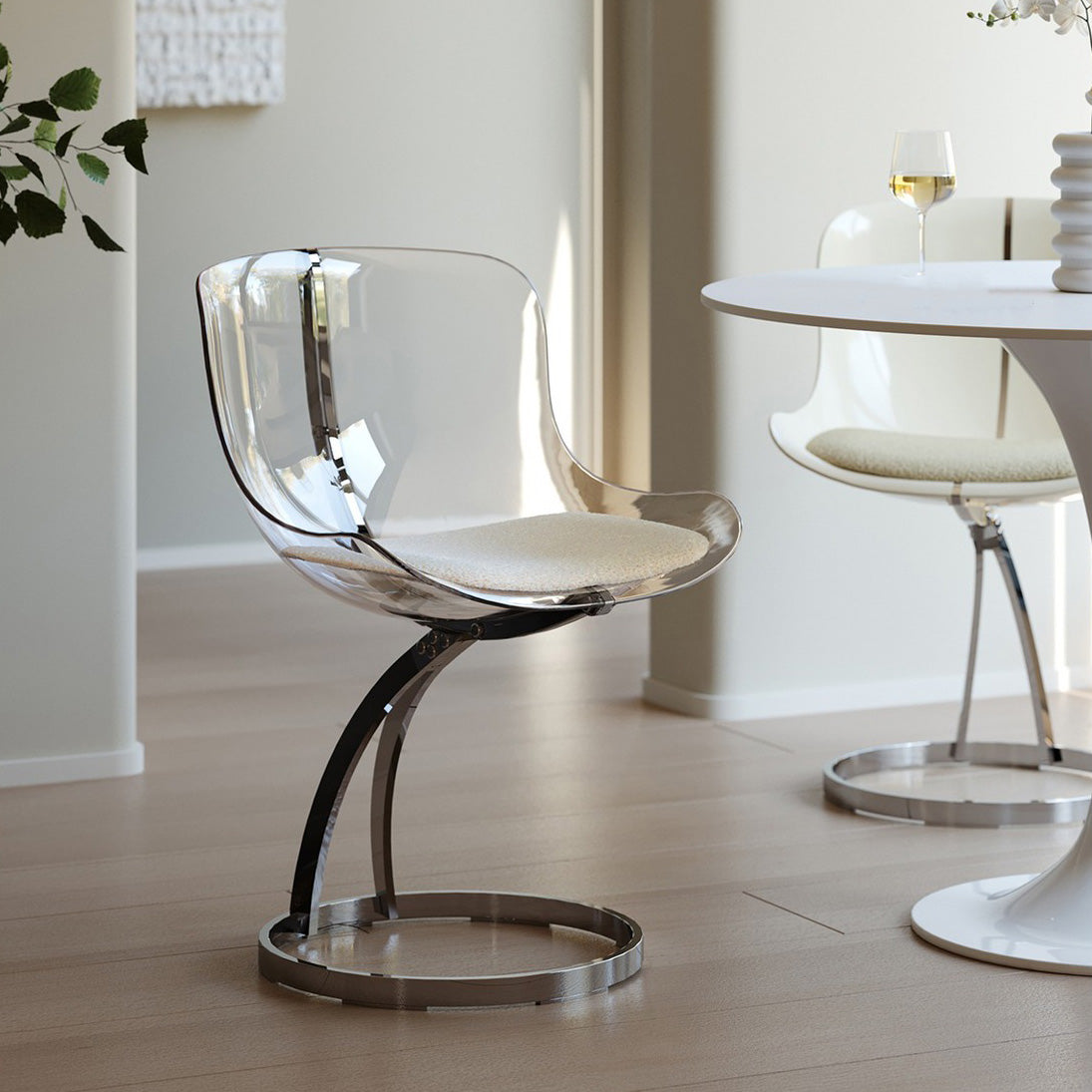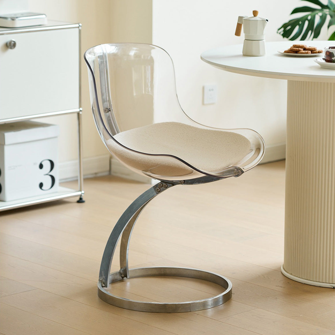 Contemporary Nordic Arc Lambswool PC Carbon Steel Sponge Dining Chair Backrest Armless For Dining Room