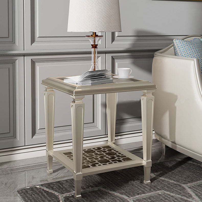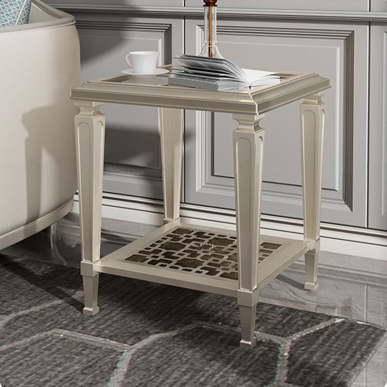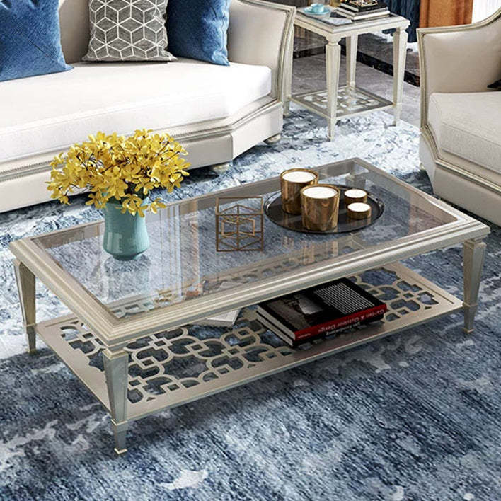 Contemporary Nordic Beech Wood Glass Hollow Square Rectangular Coffee Table With 2 Tiers For Living Room