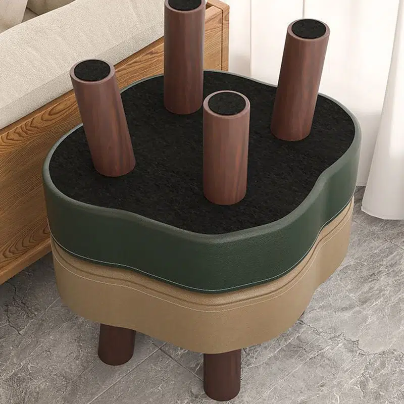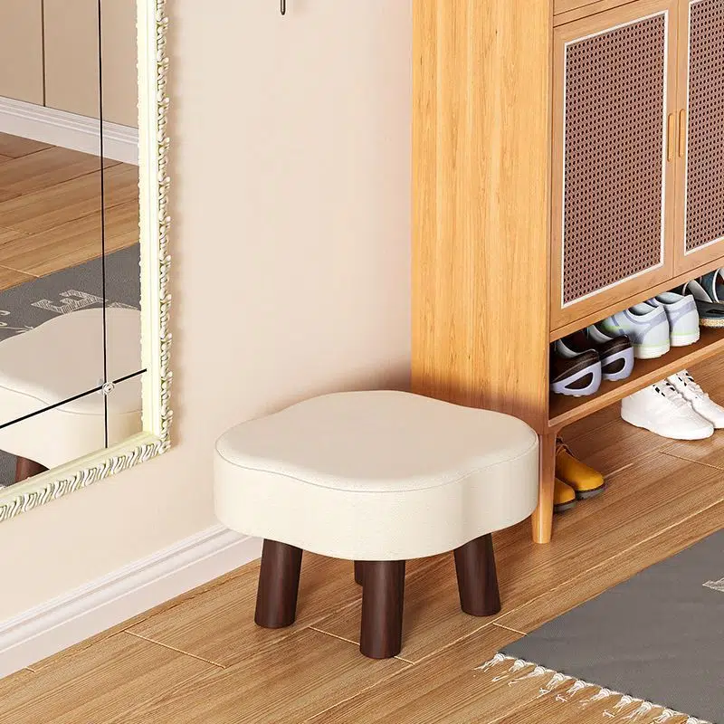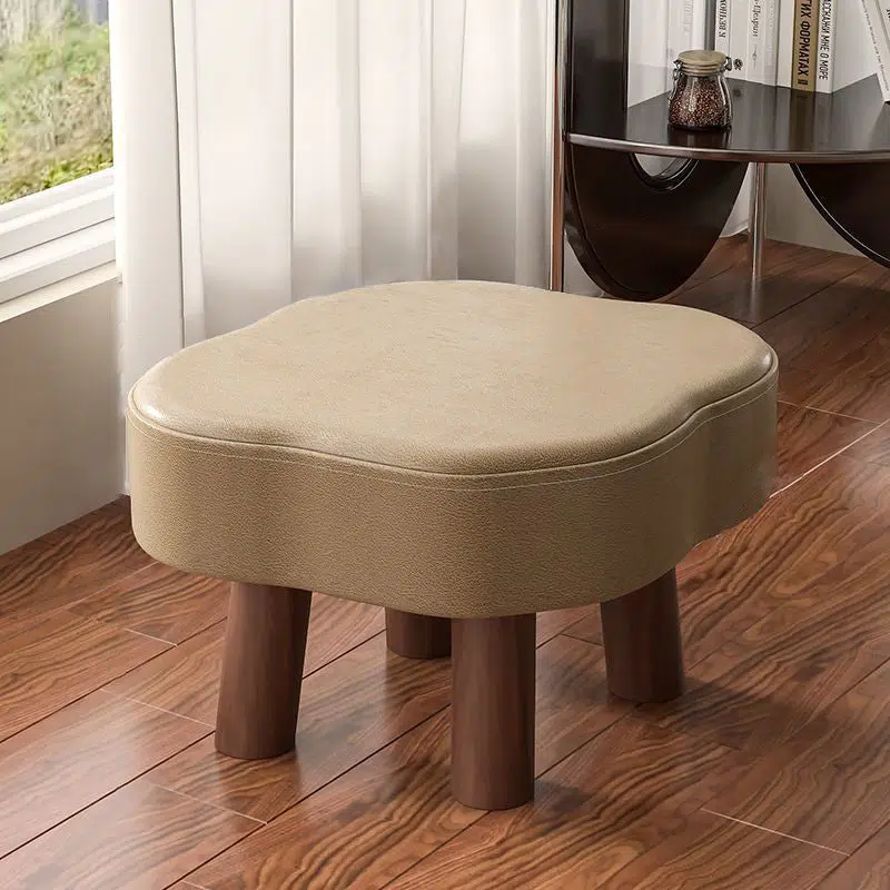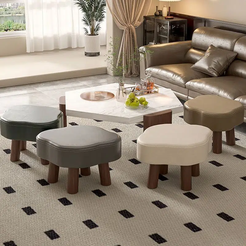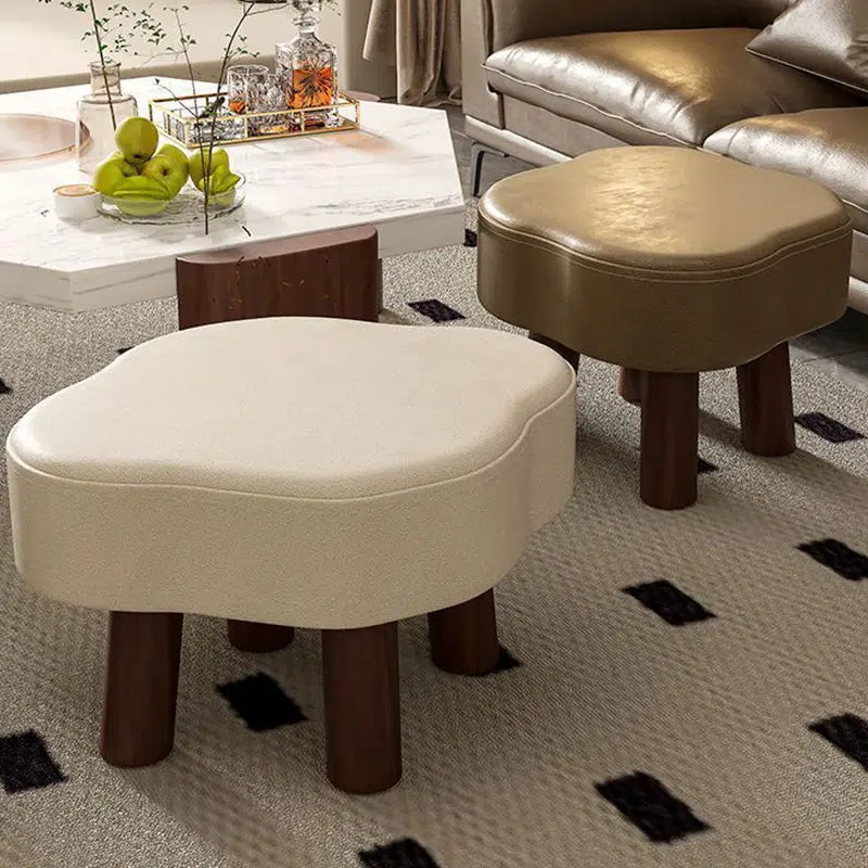 Contemporary Nordic Cloud Shape Anti-slip Strips Solid Wood Leather Low Stool Backless Armless For Living Room