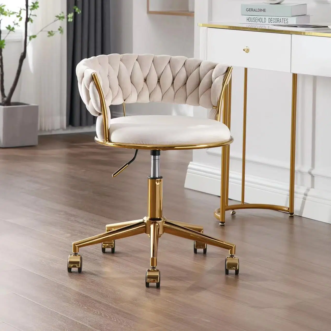 Contemporary Nordic Coil Velvet Iron Hardware Vanity Stool Backrest Armless For Bedroom