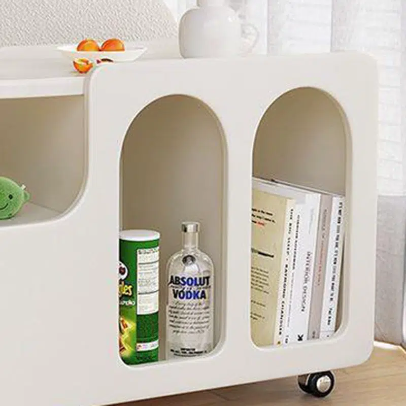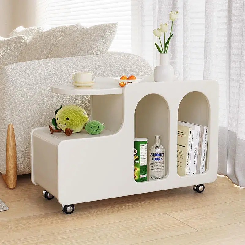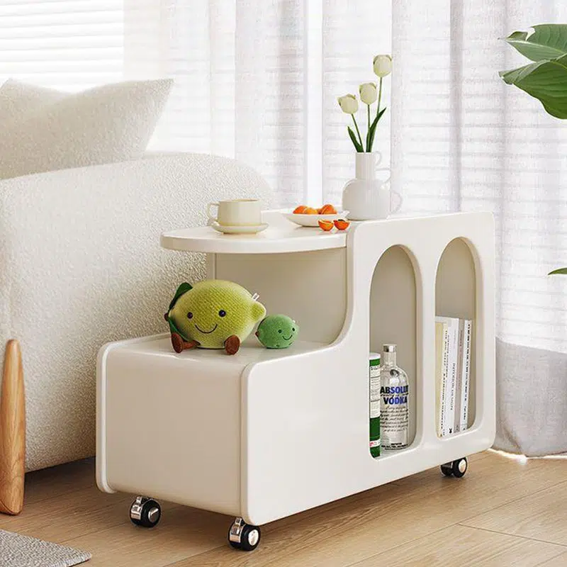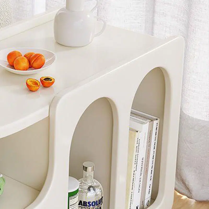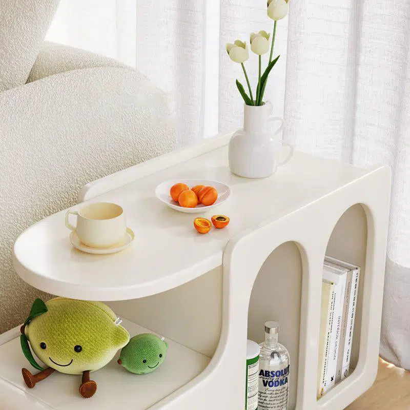 Contemporary Nordic Cream Removable Rectangular Artificial Panel Rock Slab Side Table 1-Drawer For Living Room