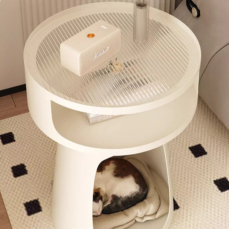 Contemporary Nordic Cream Round Cylindrical Glass Iron 1 – Cabinet Side Table For Living Room