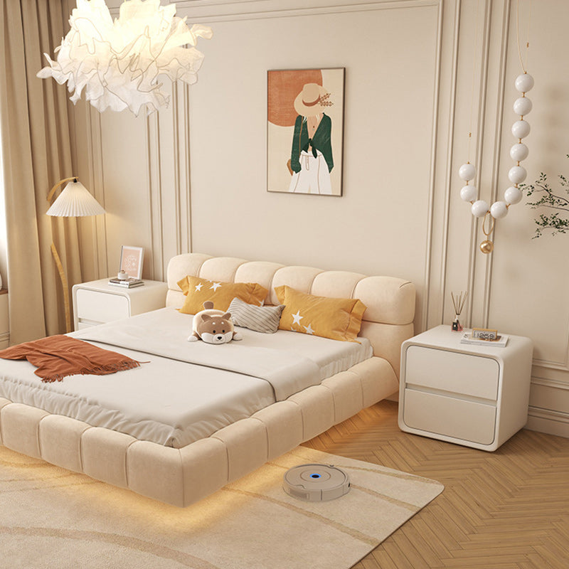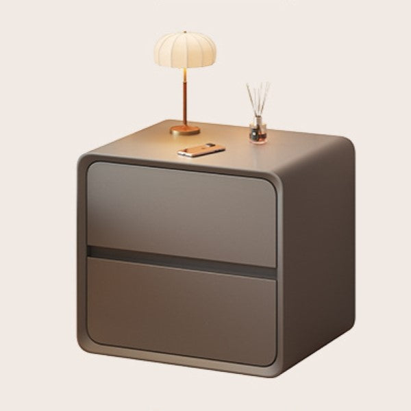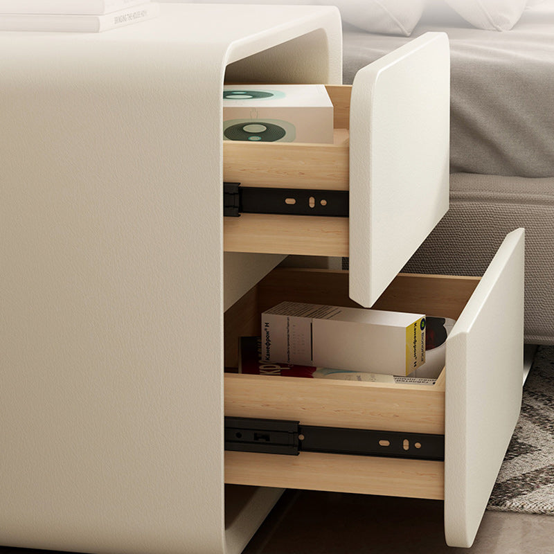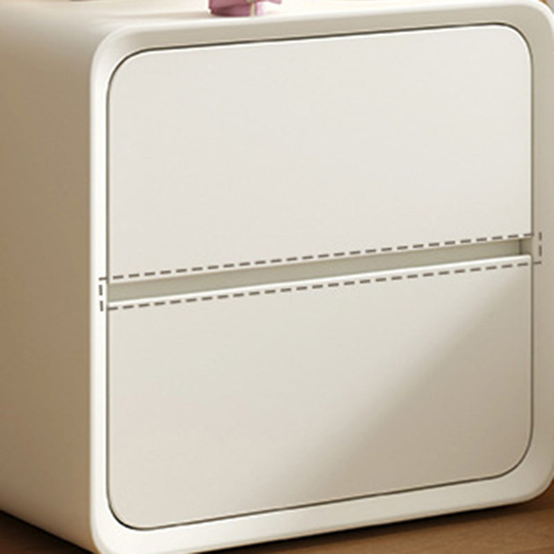 Contemporary Nordic Cream Square Rectangle Wood Veneer Nightstand 2-Drawer For Bedroom