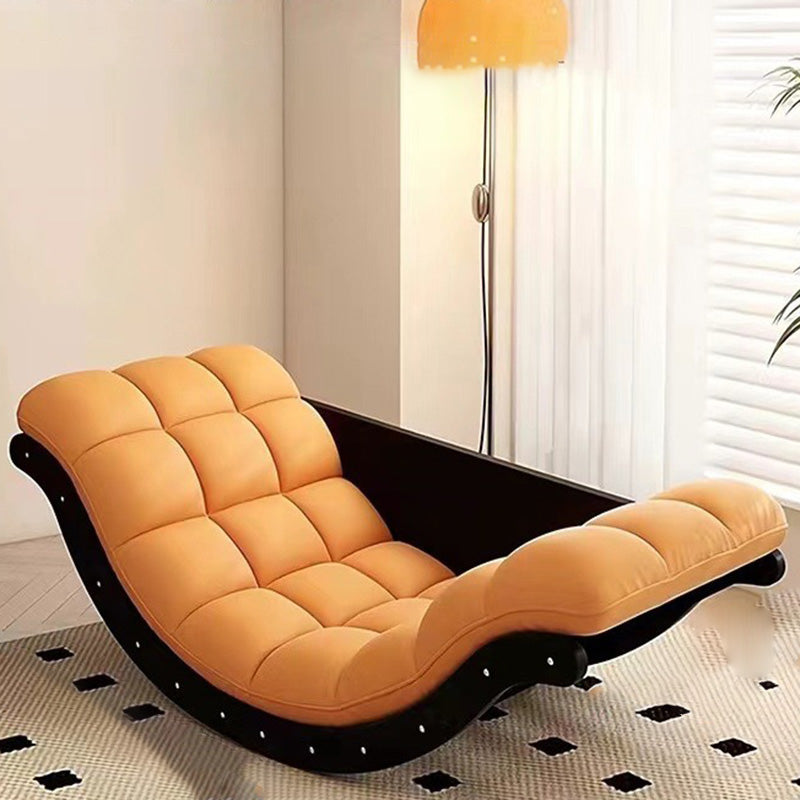 Contemporary Nordic Curved Fabric Upholstered Wood Recliner For Living Room