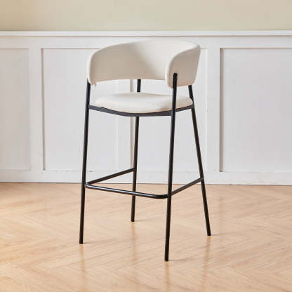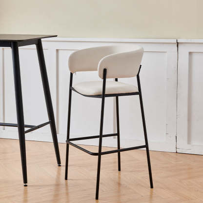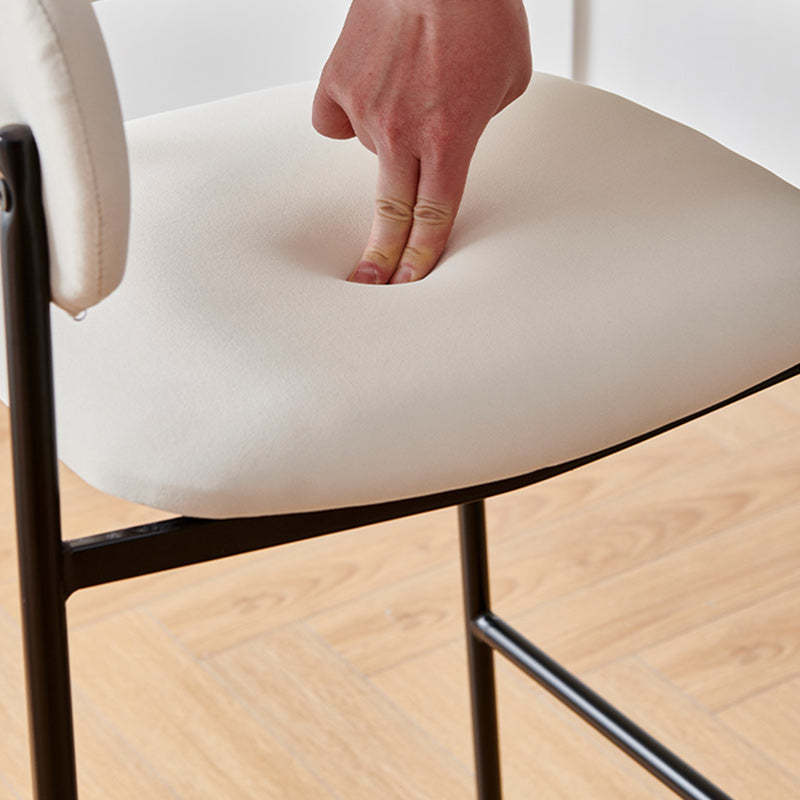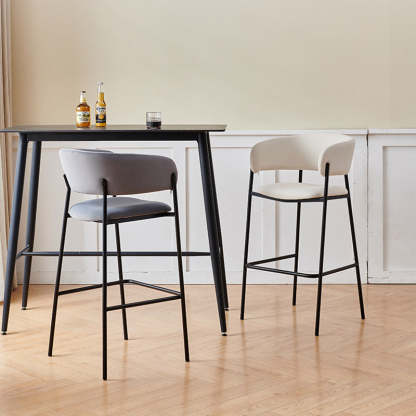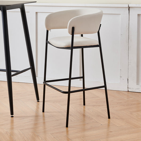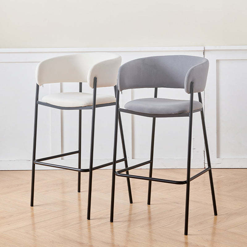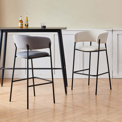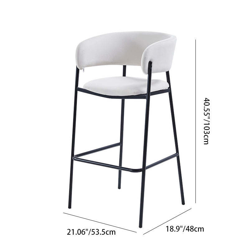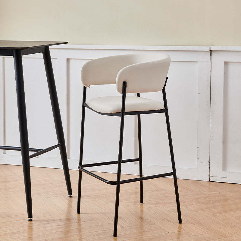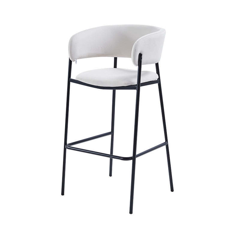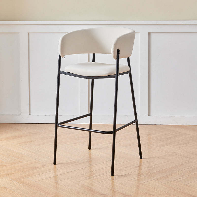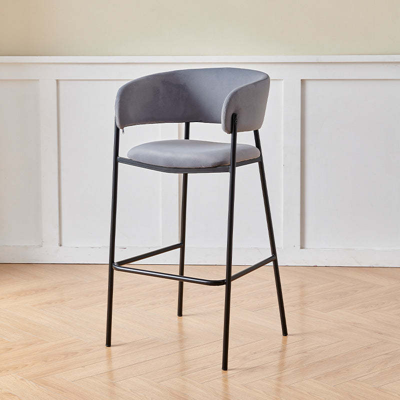 Contemporary Nordic Curved Flannel Iron Frame Bar Stool Low Back Footrest For Dining Room
