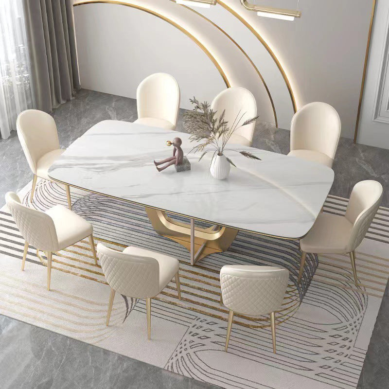 Contemporary Nordic Curved Leather Upholstered Metal Tapered Legs Dining Chair Backrest For Dining Room