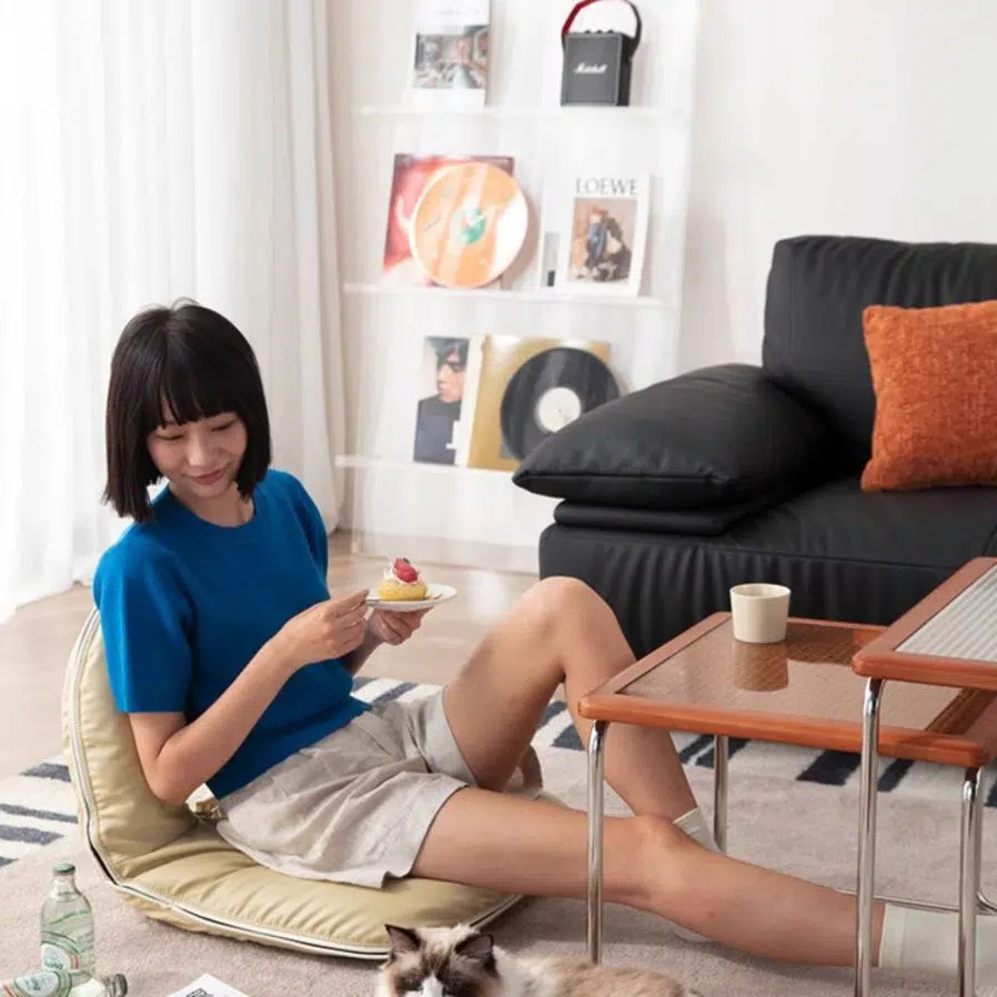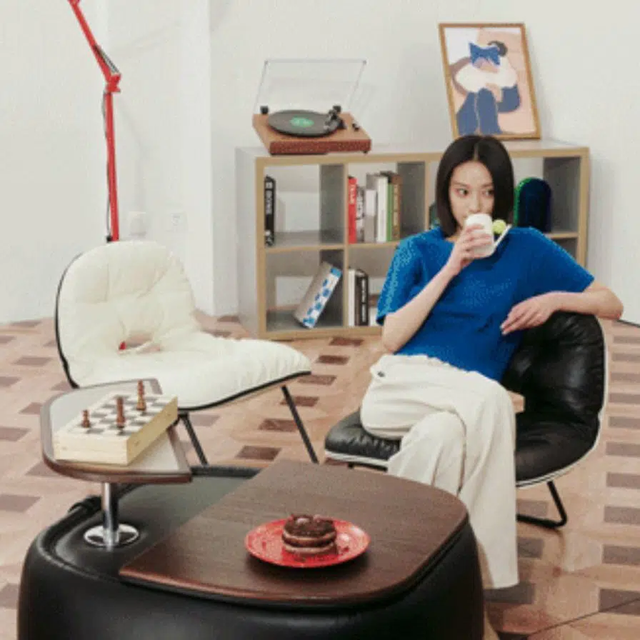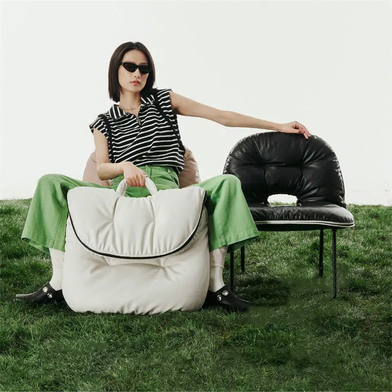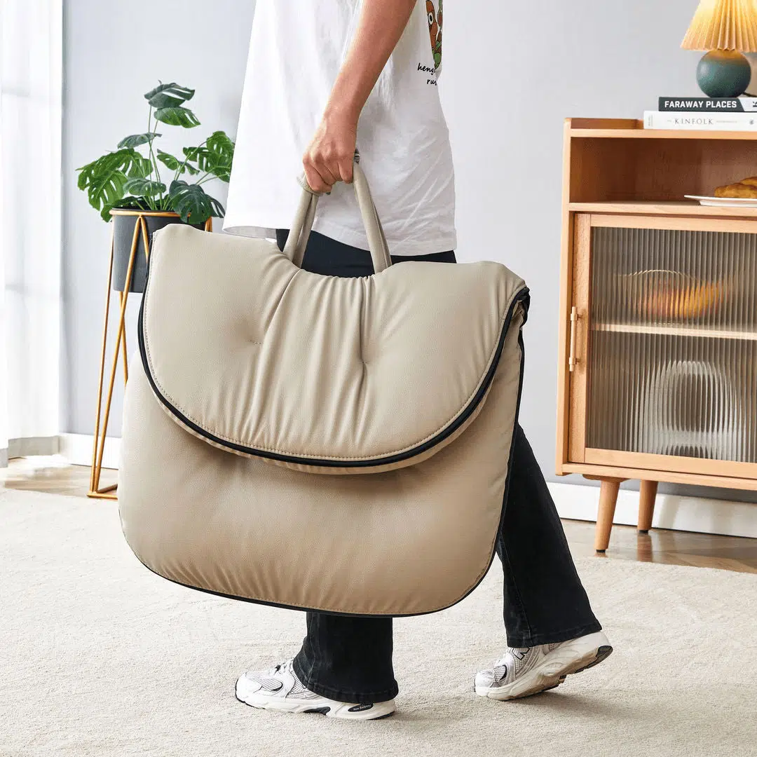 Contemporary Nordic Curved Leather Upholstered Portable Folding Accent Chair Backrest For Living Room