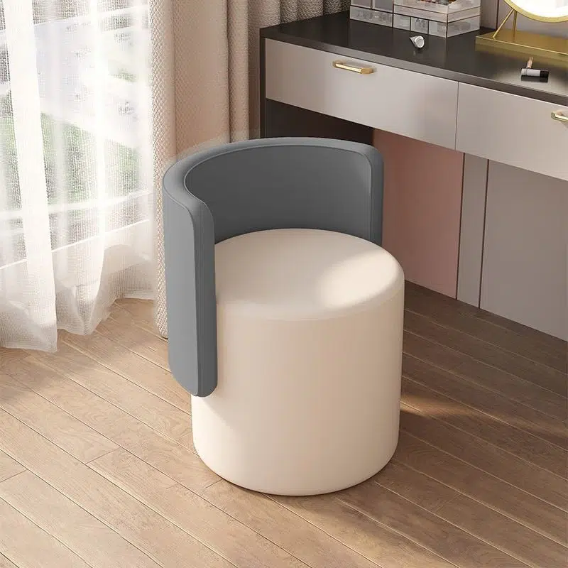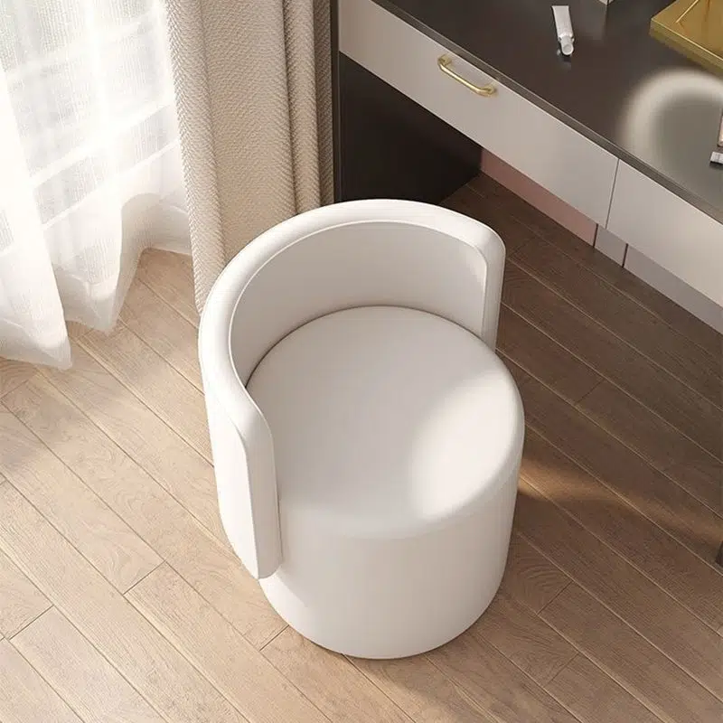Contemporary Nordic Cylinder Swivel Solid Wood Leather Vanity Stool Backrest Armless For Bedroom