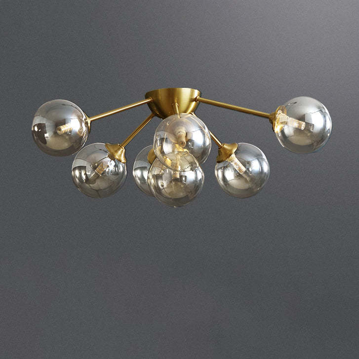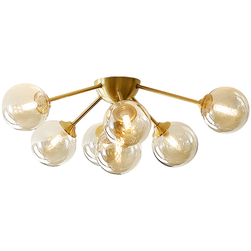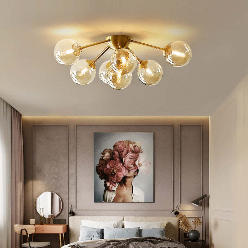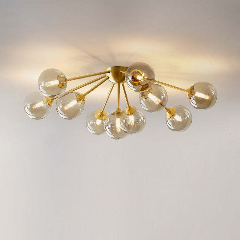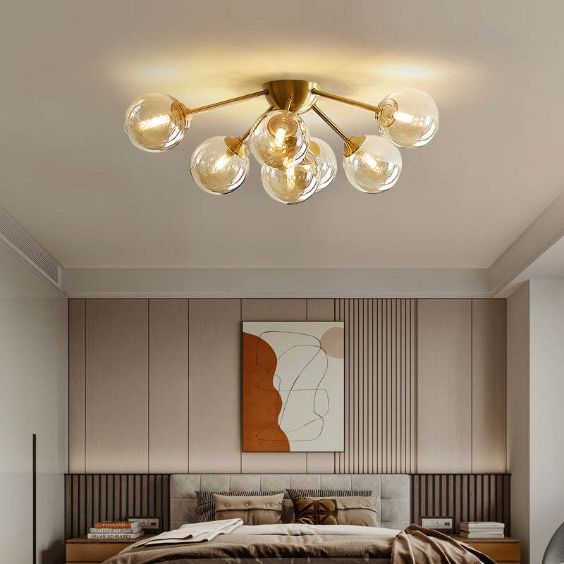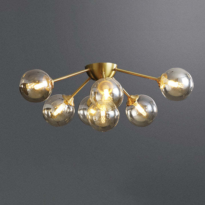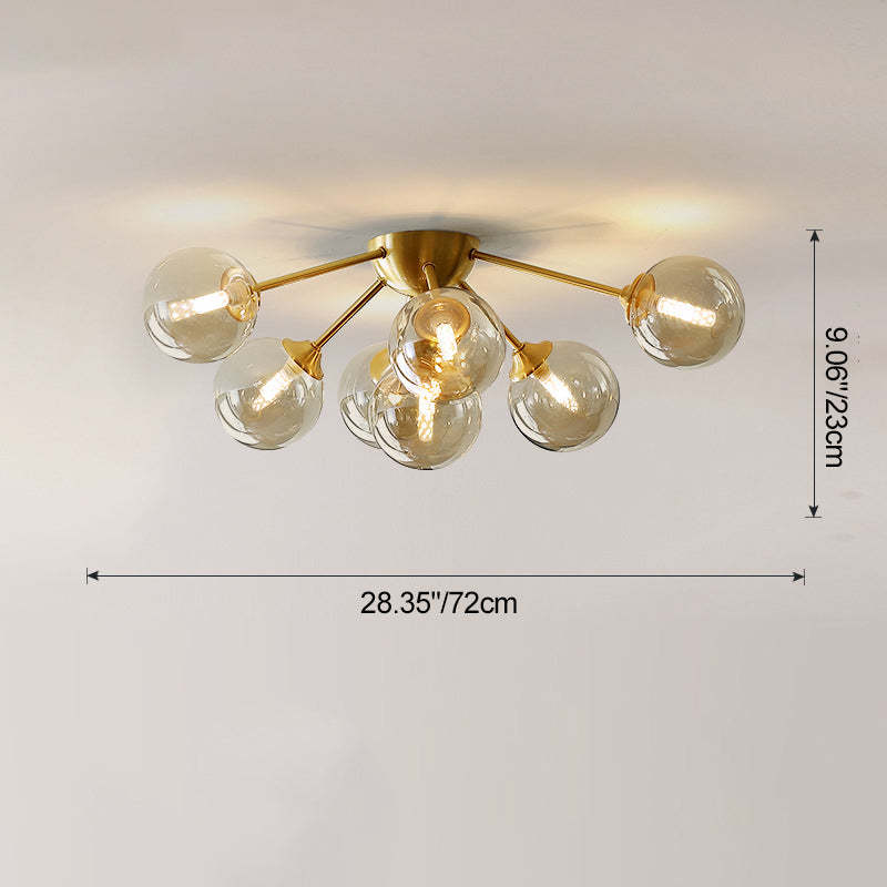 Contemporary Nordic Dome Bubble Orb Copper Glass Lampshade 7/10 - Light Semi-Flush Mount Ceiling Light For Living Room