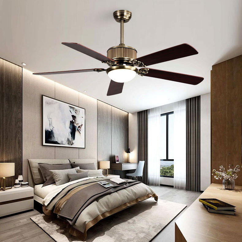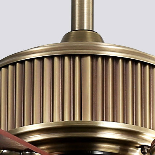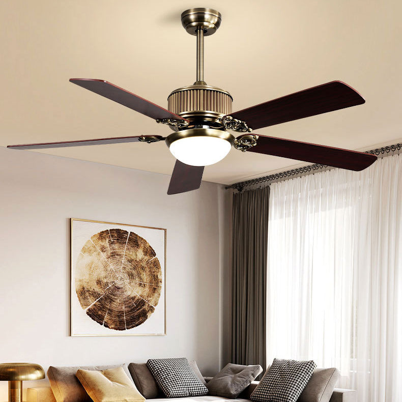 Contemporary Nordic Five Fan Blades Copper Wood Glass LED Downrods Ceiling Fan Light For Living Room