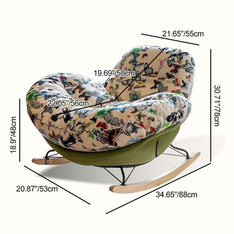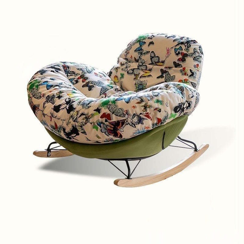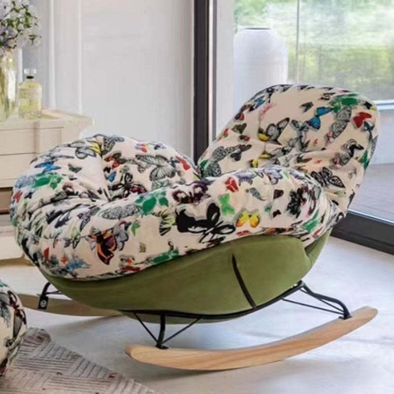 Contemporary Nordic Flannelette Iron Solid Wood Oval Curved Recliner Backrest Armrest For Living Room