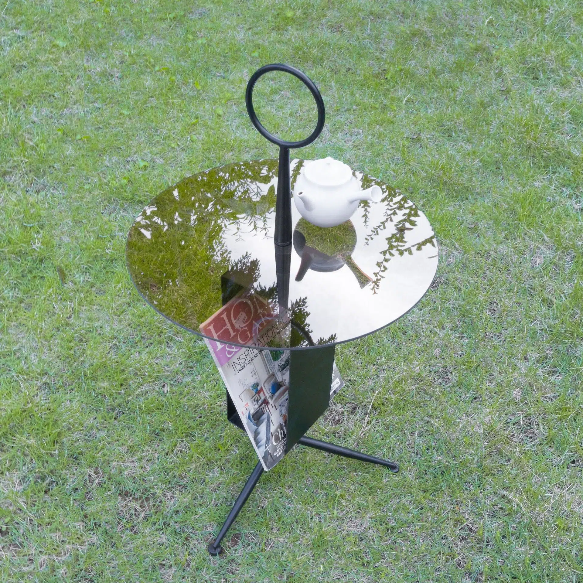 Contemporary Nordic Glass Round Top Iron Tripod End Table Storage Shelf For Living Room