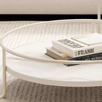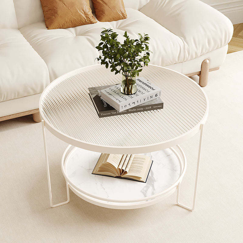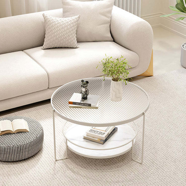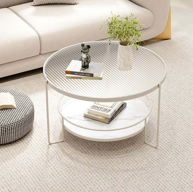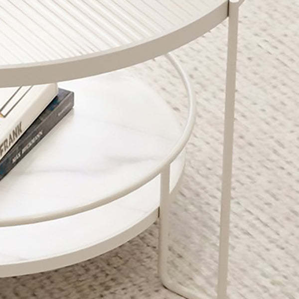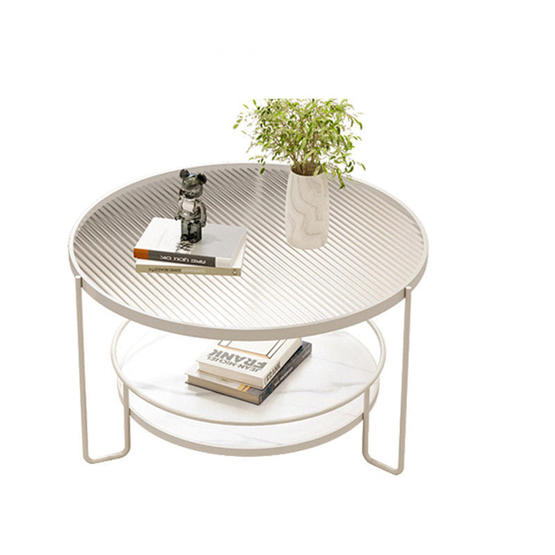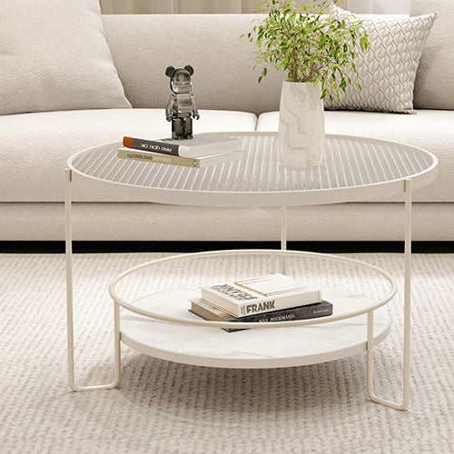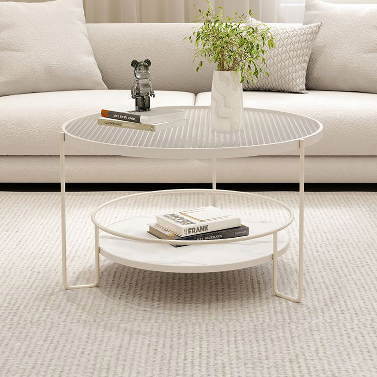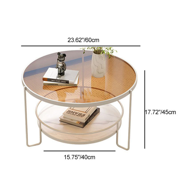 Contemporary Nordic Glass Slab Iron Round Coffee Table With 2 Tiers Storage For Living Room
