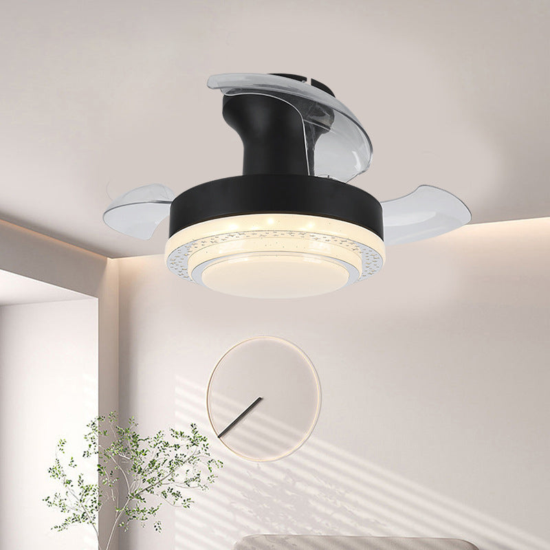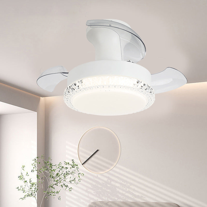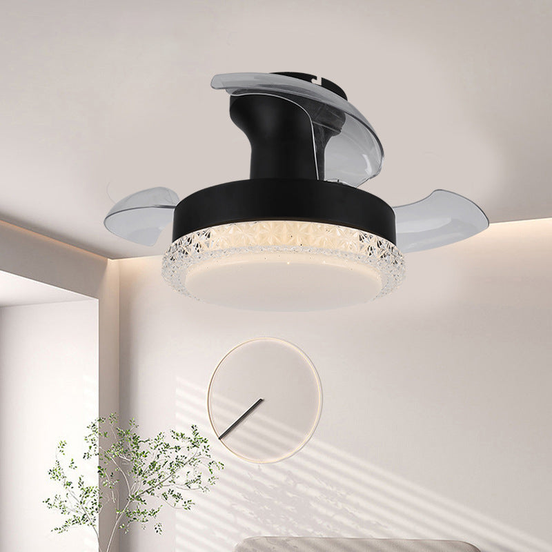 Contemporary Nordic Iron Acrylic ABS Round Texture LED Semi-Flush Mount Ceiling Fan Light For Living Room