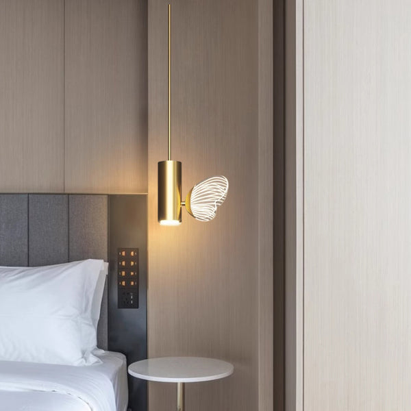 Contemporary Nordic Iron Aluminum Acrylic Cylinder Butterfly LED Pendant Light For Bedside