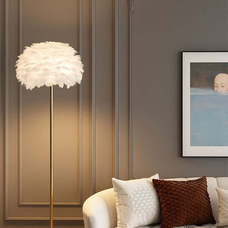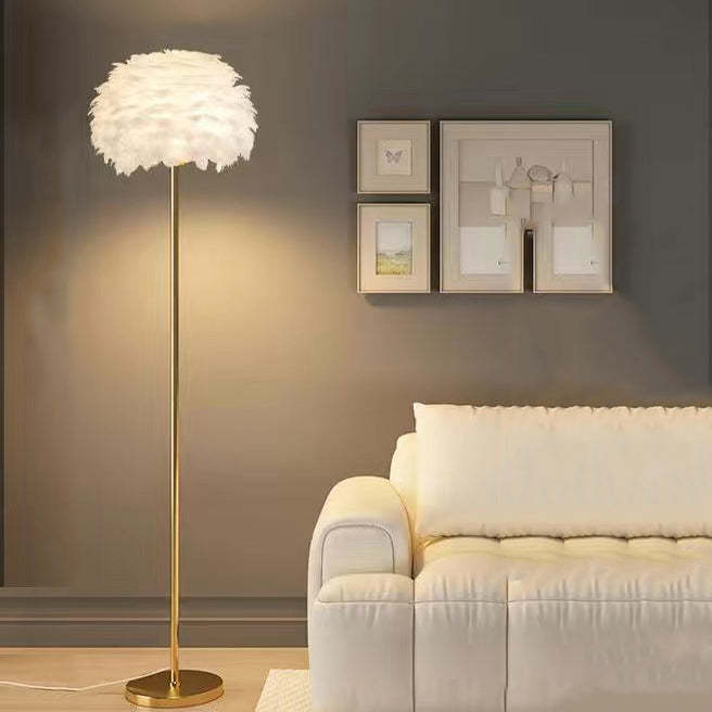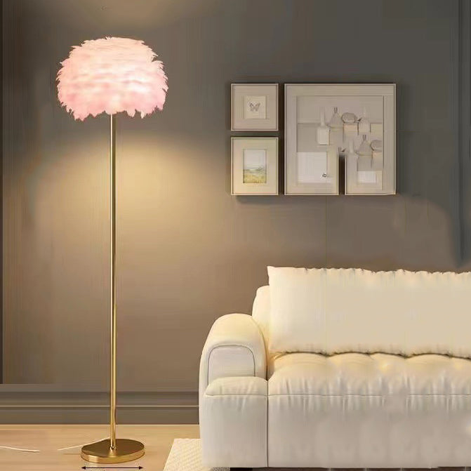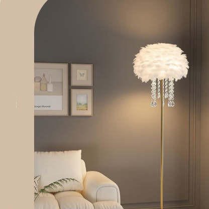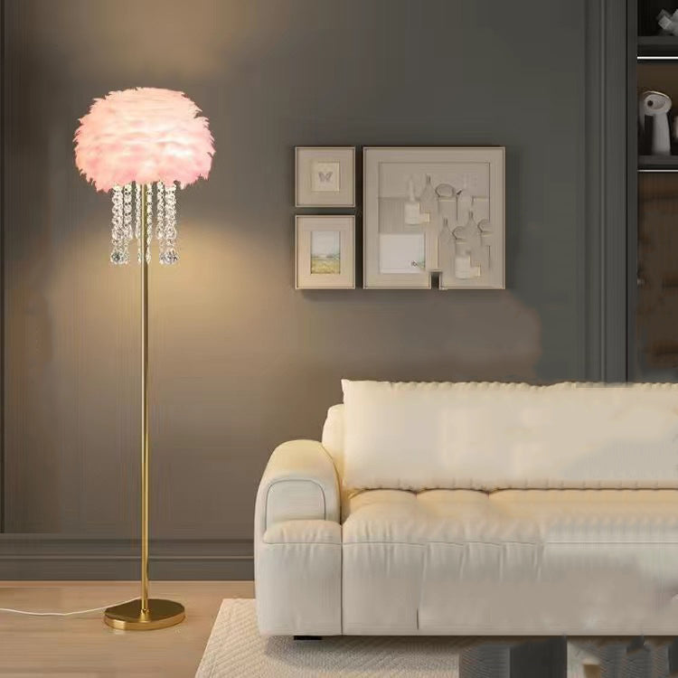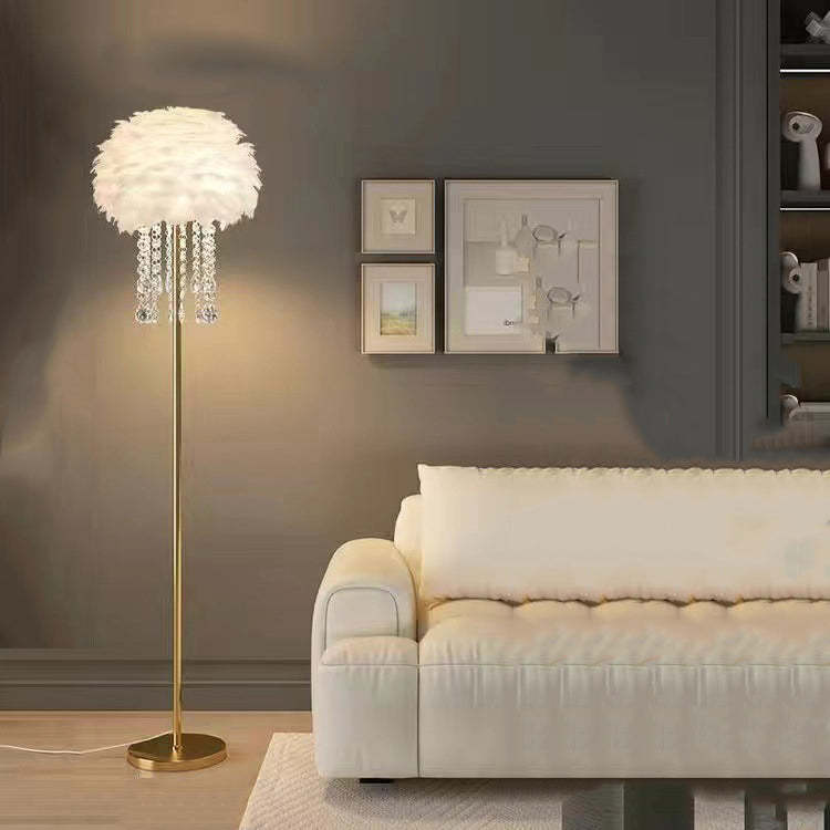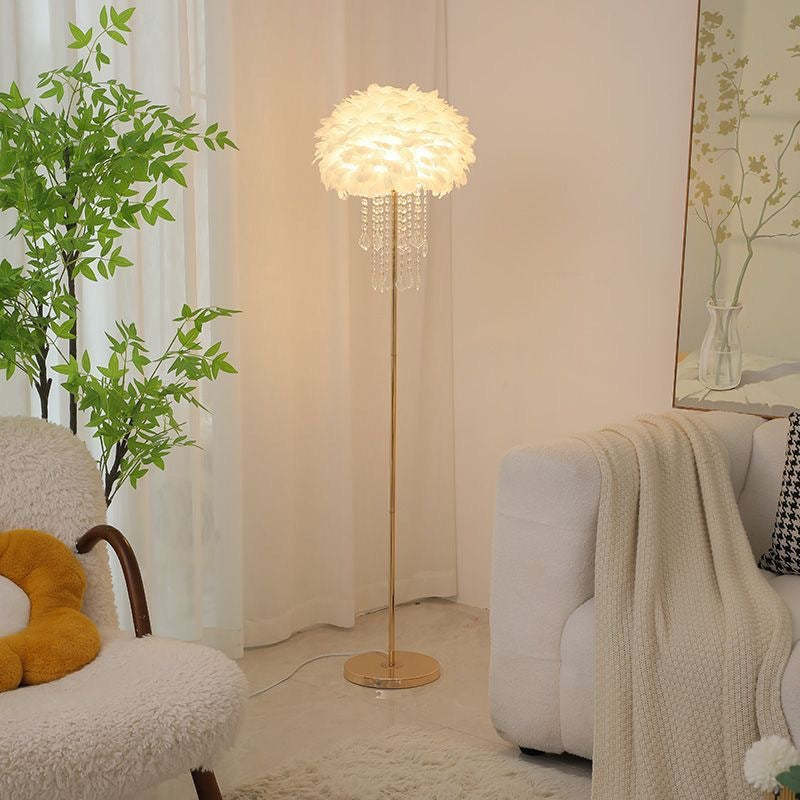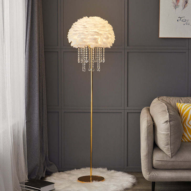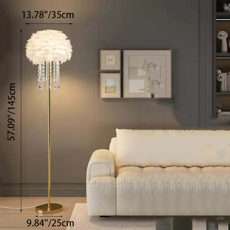 Contemporary Nordic Iron Feather Crystal Oval 1-Light Standing Floor Lamp For Living Room