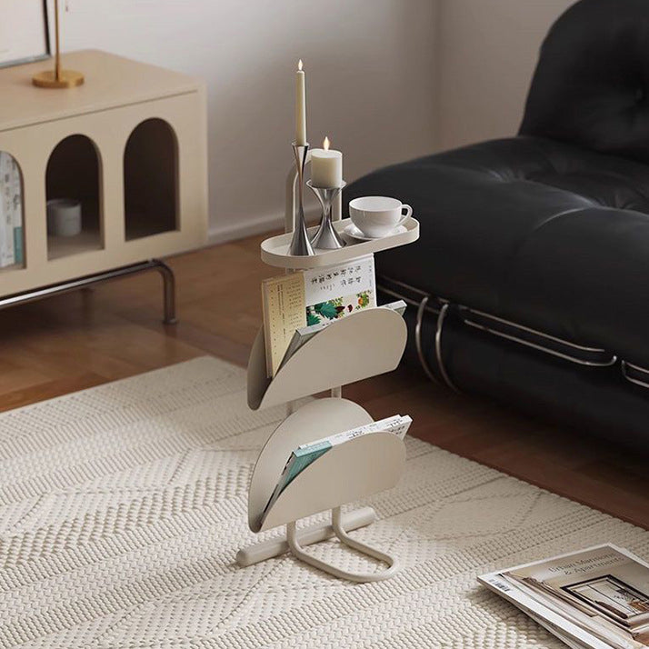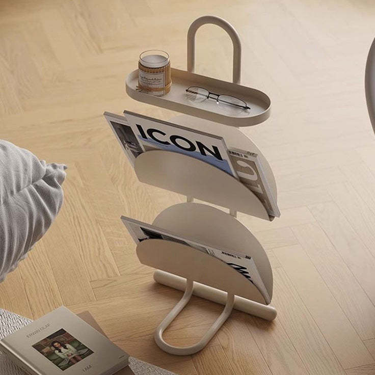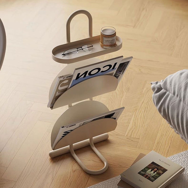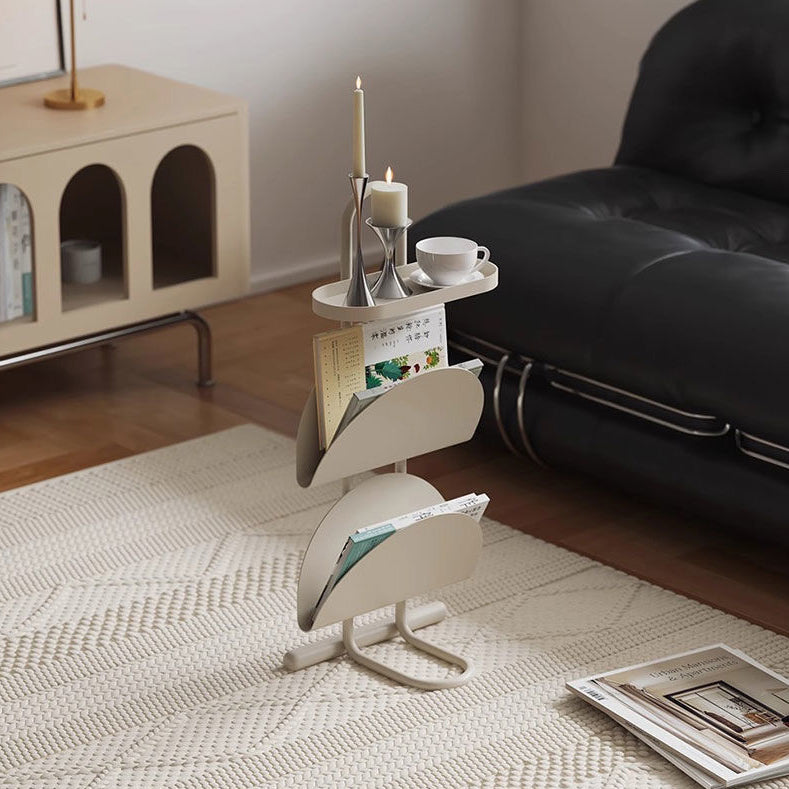 Add functional style to your living room with this Contemporary Nordic side table. crafted from sturdy iron in a unique oval and semi-circle design. Featuring a 3-tier structure for storage. it comes in Beige. Green. Gray. Red. and Black. offering modern versatility and vibrant color options.