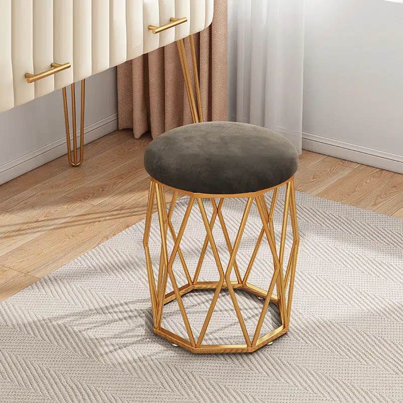 Contemporary Nordic Iron Velvet & Tech Fabric Round Vanity Stool With Diamond Legs For Bedroom
