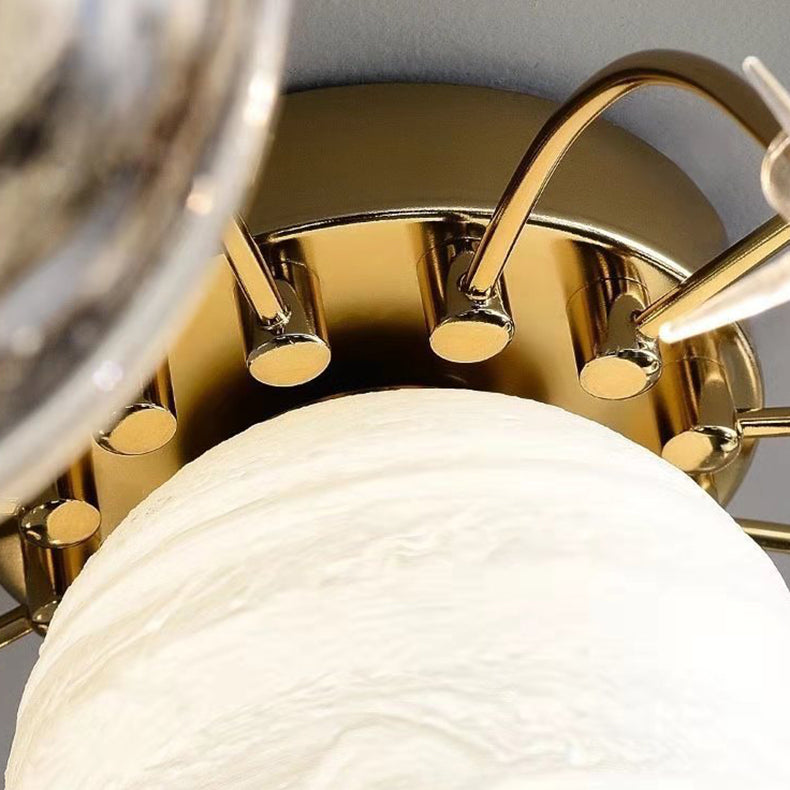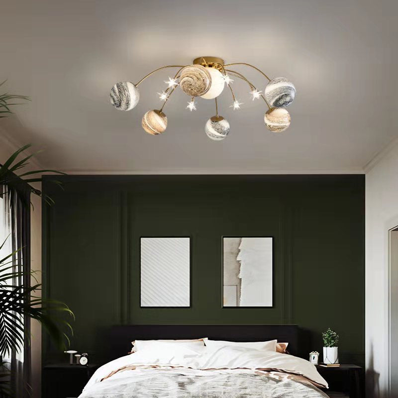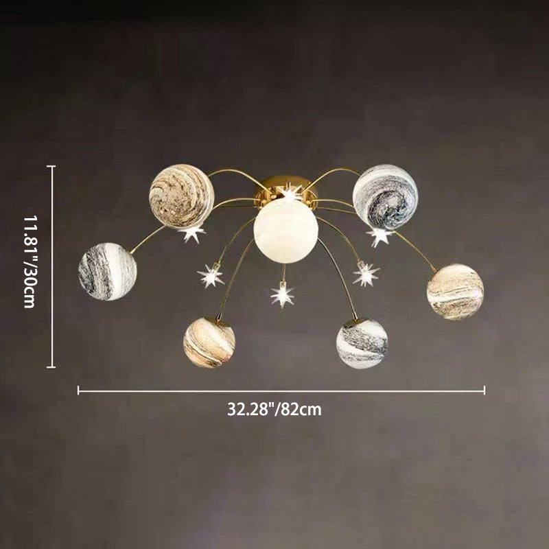 Contemporary Nordic Kids Iron Glass Ball Earth Planet 13-Light Semi-Flush Mount Ceiling Light For Bedroom