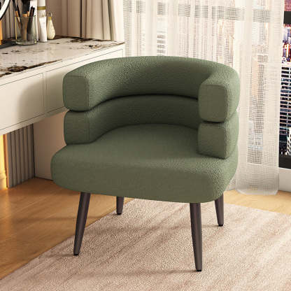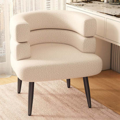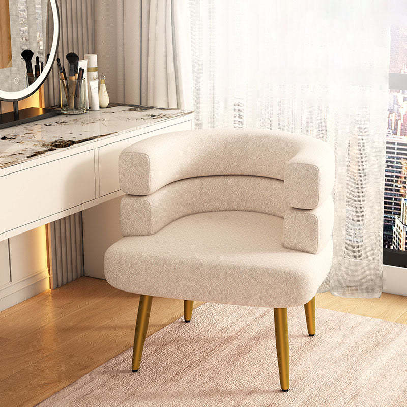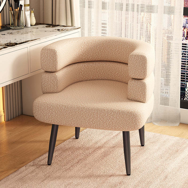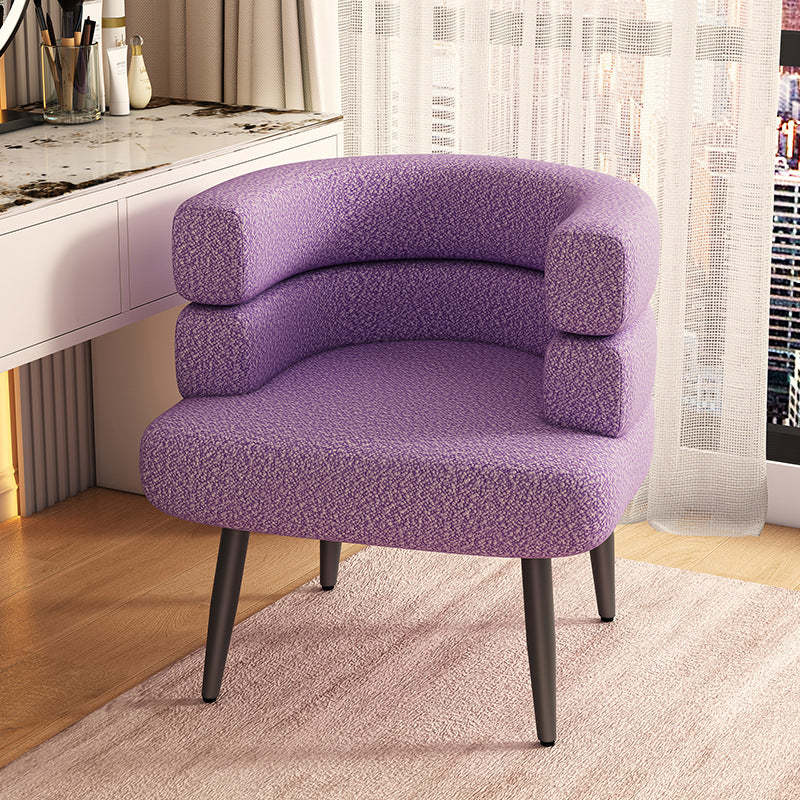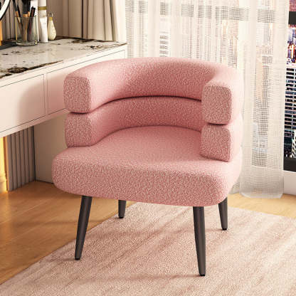 Featuring a cozy lambswool finish and sturdy carbon steel legs in black or gold. this curved Nordic accent chair blends comfort with modern elegance. Available in a variety of soft hues including beige. khaki. green. pink. orange. purple. blue. and gray. it adds a stylish touch to any bedroom or living room.