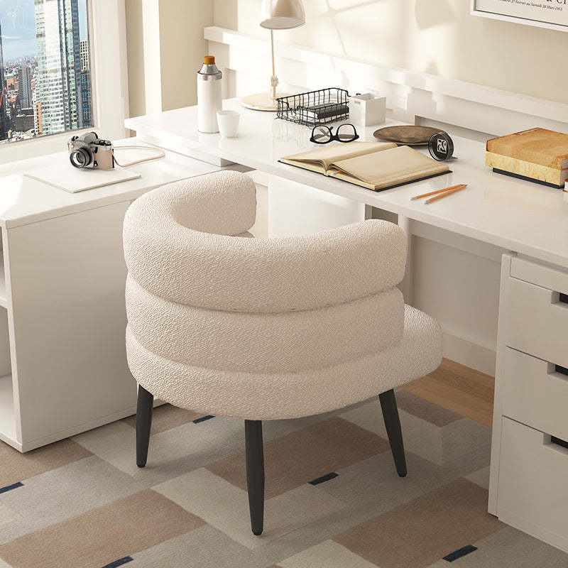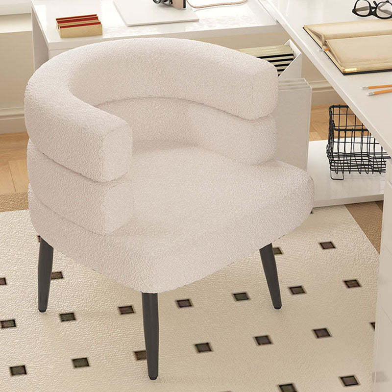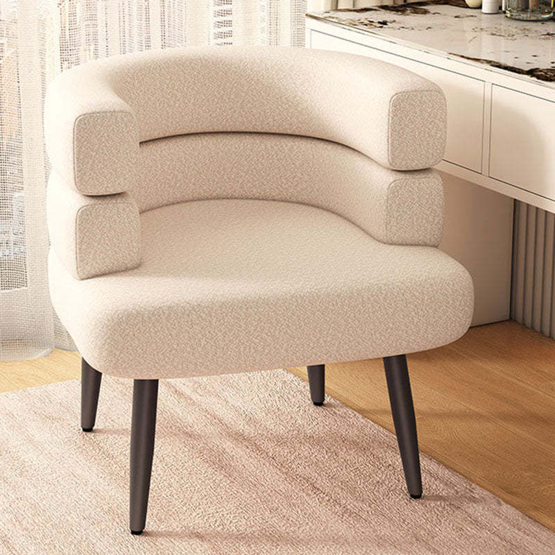Contemporary Nordic Lambswool & Carbon Steel Curved Round Accent Chair For Bedroom & Living Room