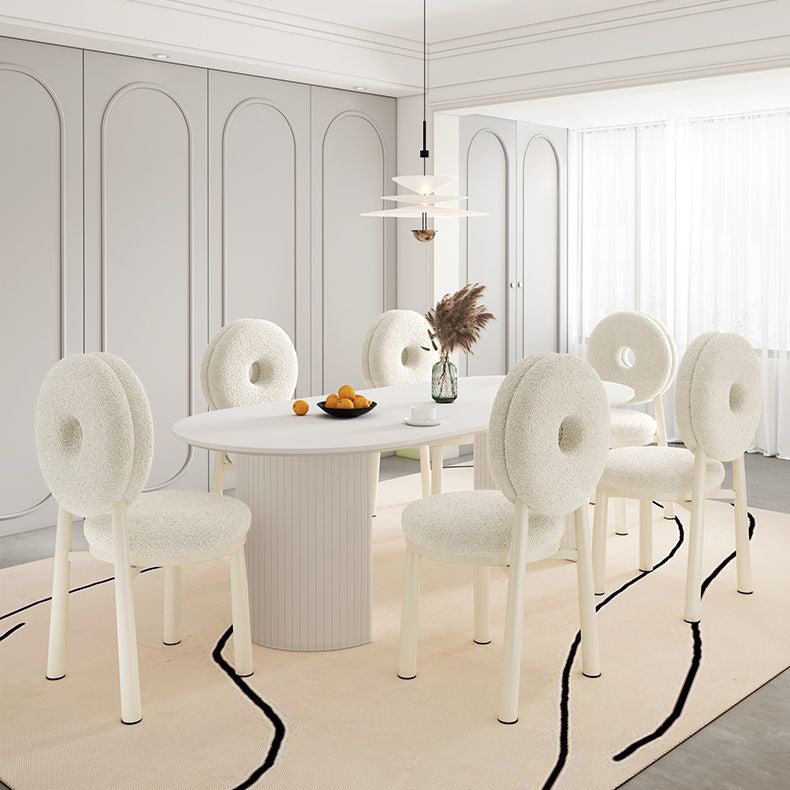 Contemporary Nordic Lambswool Carbon Steel Sponge Round Dining Chair Backrest For Dining Room