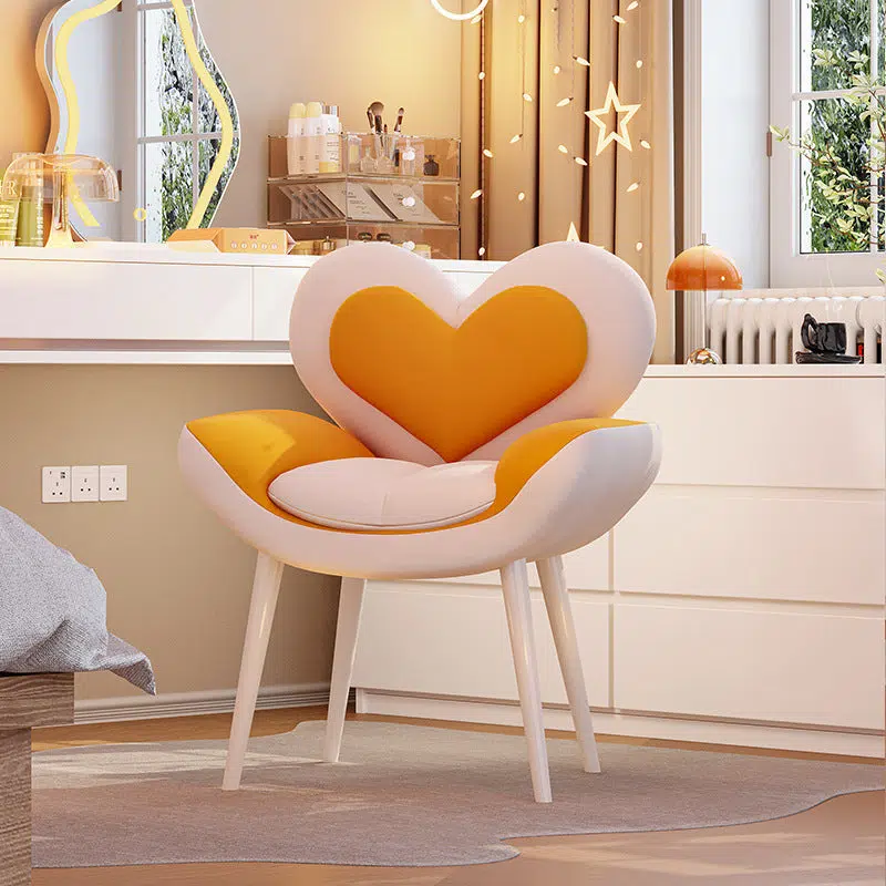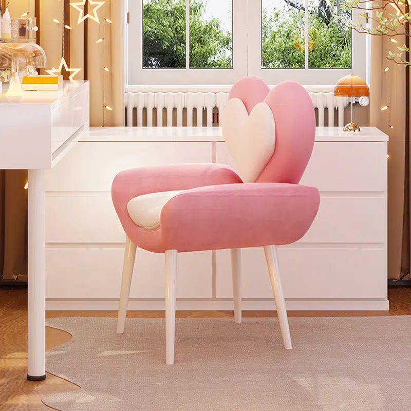 Contemporary Nordic Love Heart Flannelette Pine Iron Vanity Stool Backrest Armrest For Bedroom