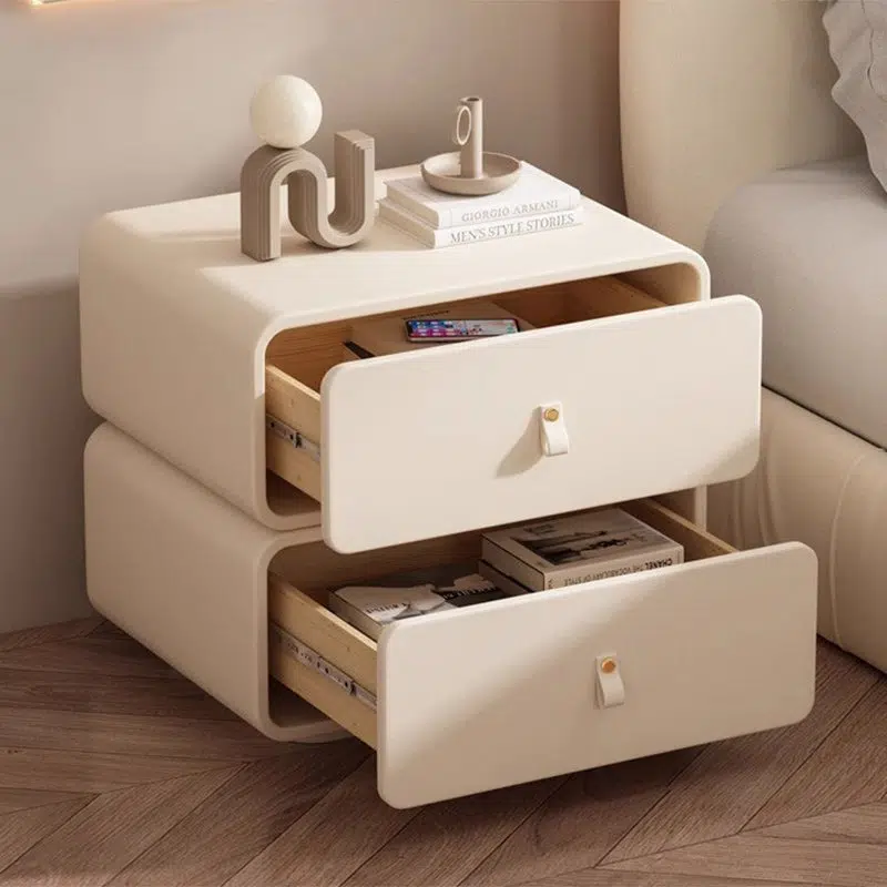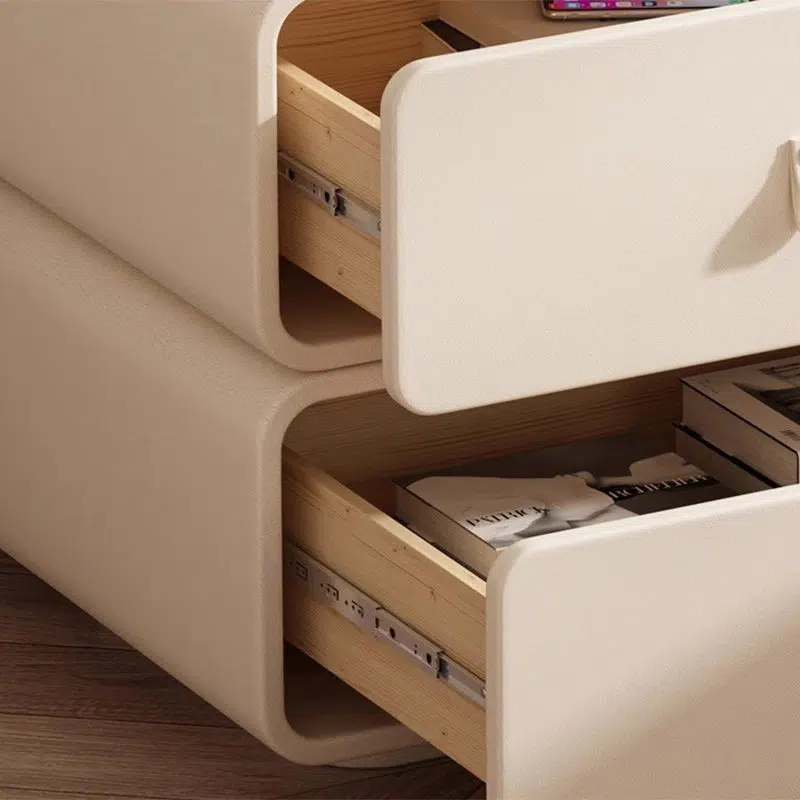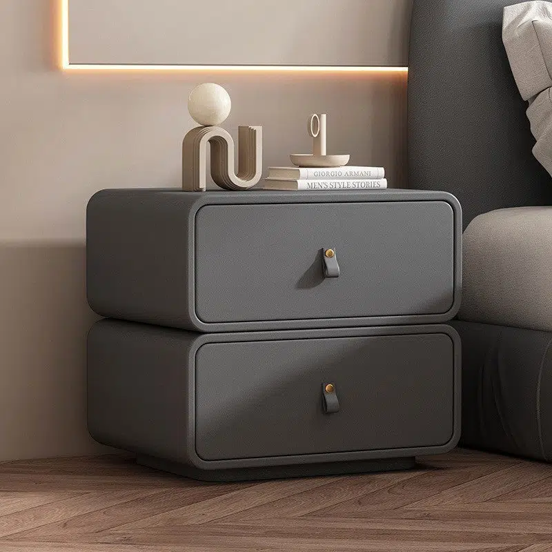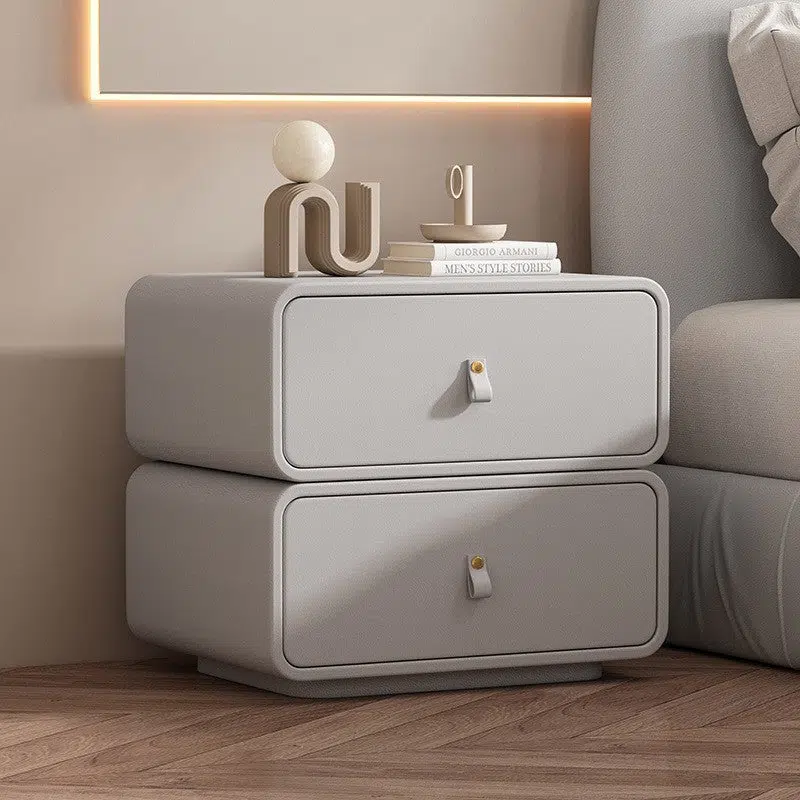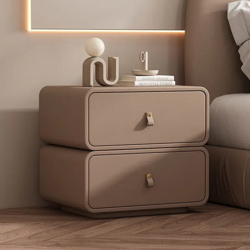 Crafted from microfiber leather and plank. this square nightstand blends Nordic simplicity with a modern luxury feel. Featuring 2 spacious drawers and available in beige. light gray. dark gray. and khaki. it’s a stylish storage solution for any bedroom or living room.