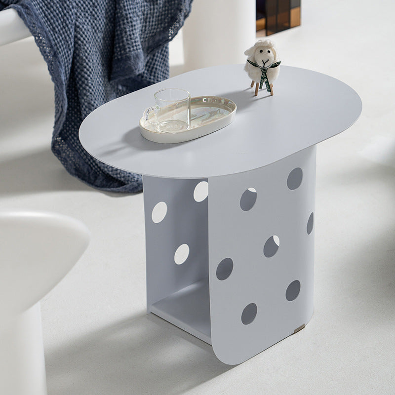 Contemporary Nordic Oval Hollowed Out Base Stainless Steel End Table For Living Room