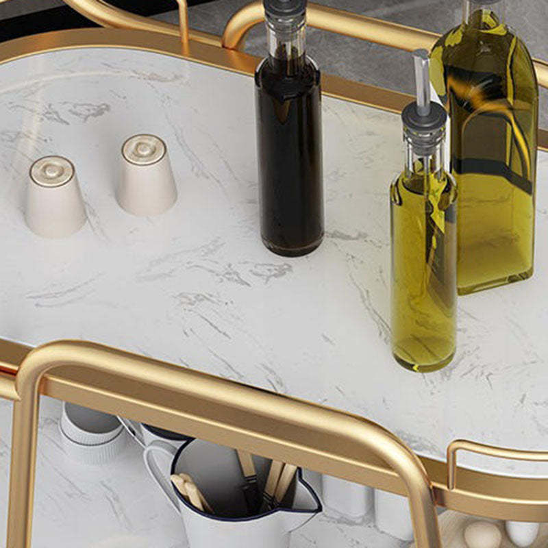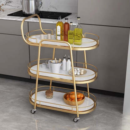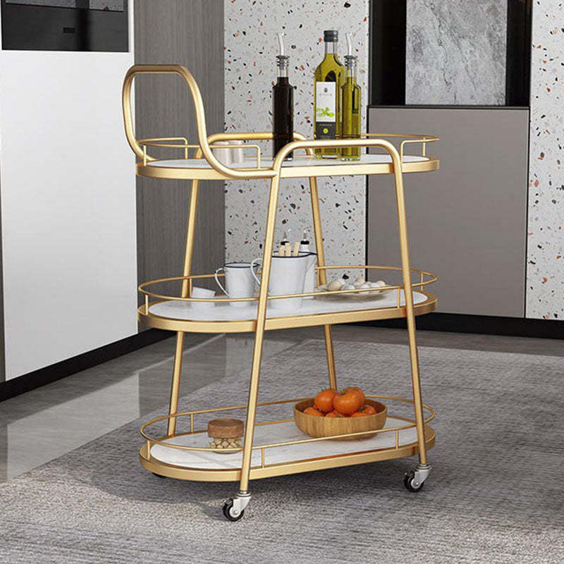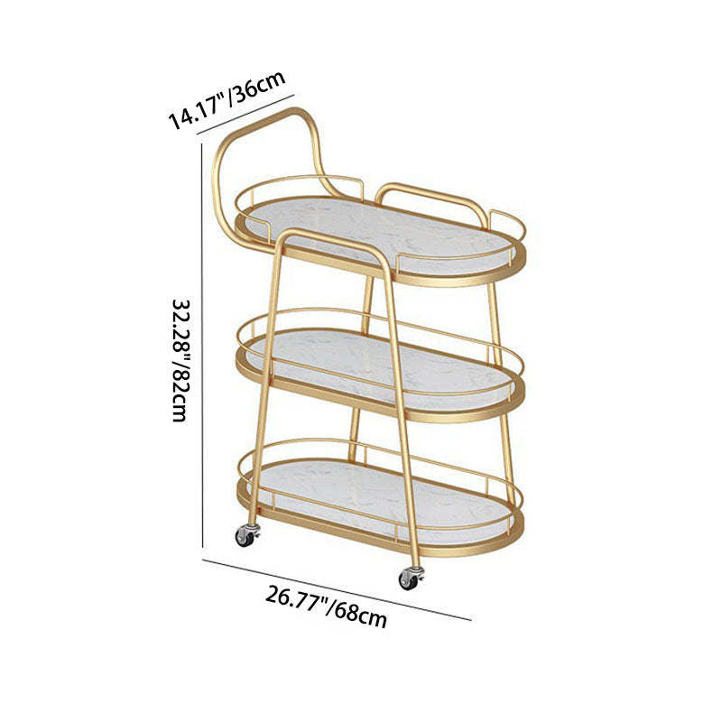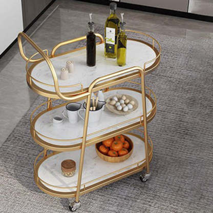 Contemporary Nordic Oval Marble Metal Dining Cart 3-Tray For Dining Room