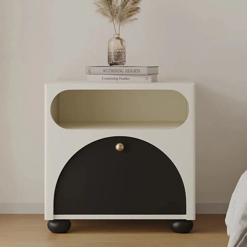Add a playful modern touch to your bedroom with this white cube-shaped nightstand. crafted from durable pine wood in a clean Nordic design. Featuring a single drawer for convenient bedside storage. its minimalist dice-inspired form blends effortlessly into contemporary spaces.