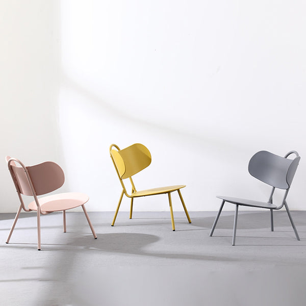 This Nordic-style accent chair features a sleek curved backrest and round seat. made from durable plastic and Iron with anti-scratch foot pads for floor protection. Available in gray. white. pink. yellow. and blue. it's perfect for bedrooms. living rooms. or balcony relaxation zones.
