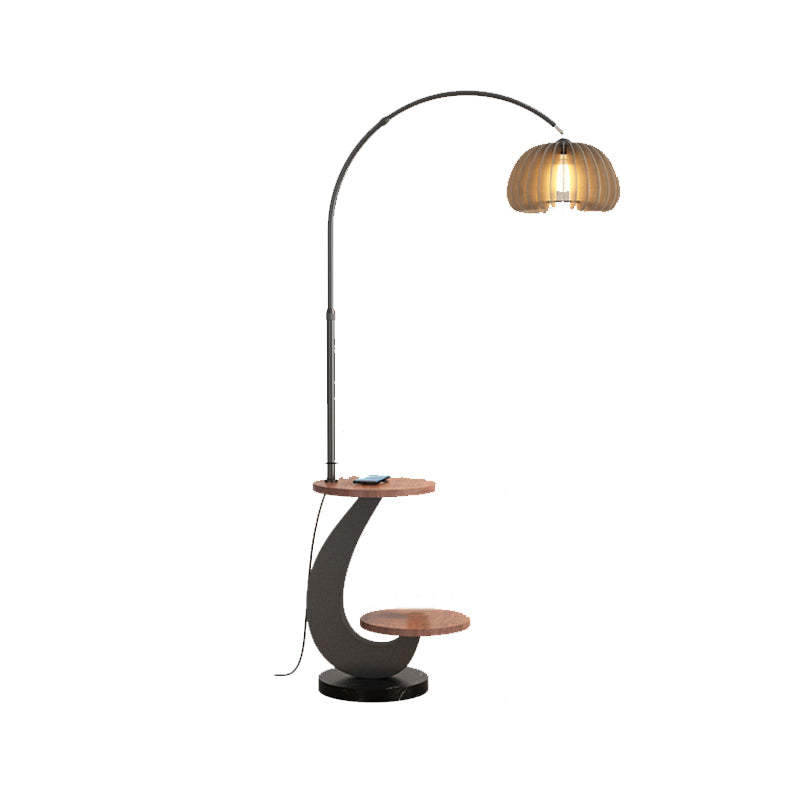 Contemporary Nordic Pumpkin Wood Lampshade Iron 1 - Light Standing Floor Lamp For Living Room
