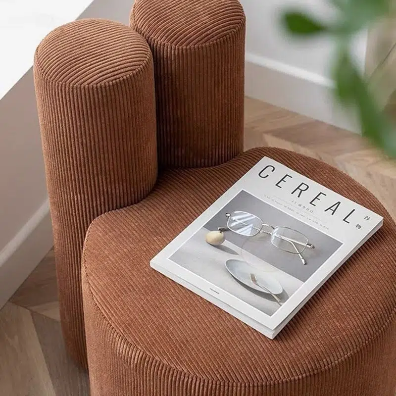Contemporary Nordic Rabbit Ears Cylinder Corduroy Solid Wood Vanity Stool Backrest Armless For Bedroom