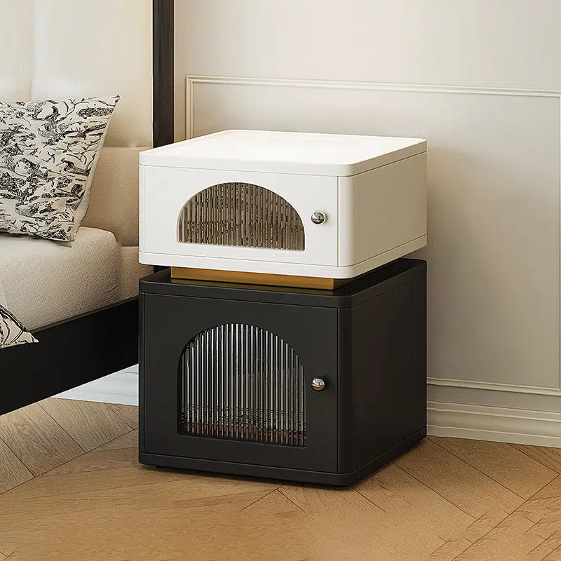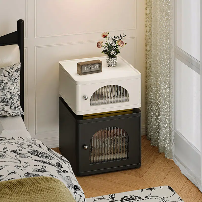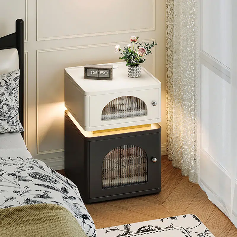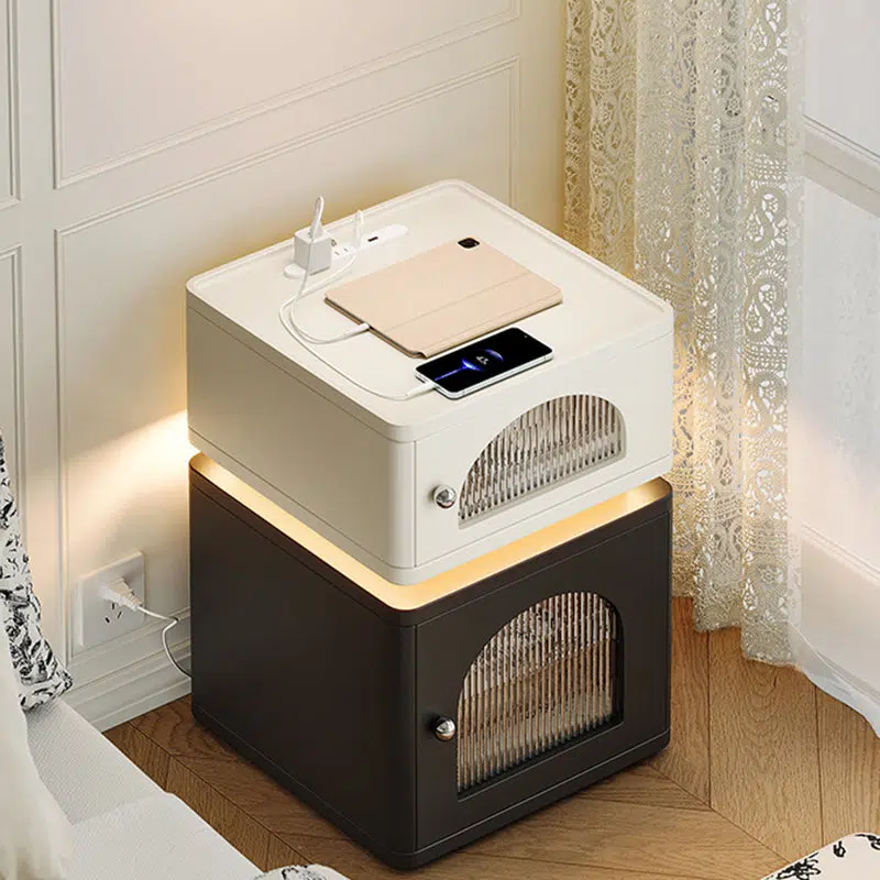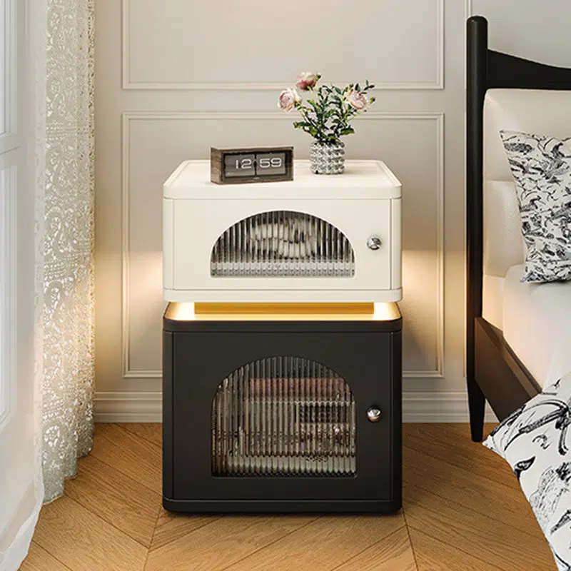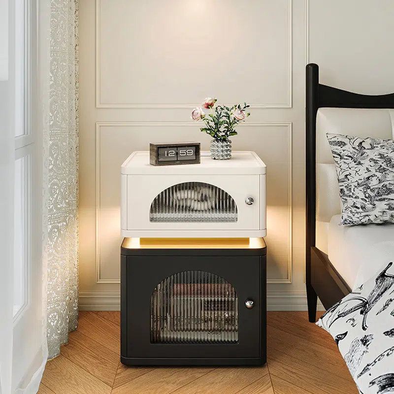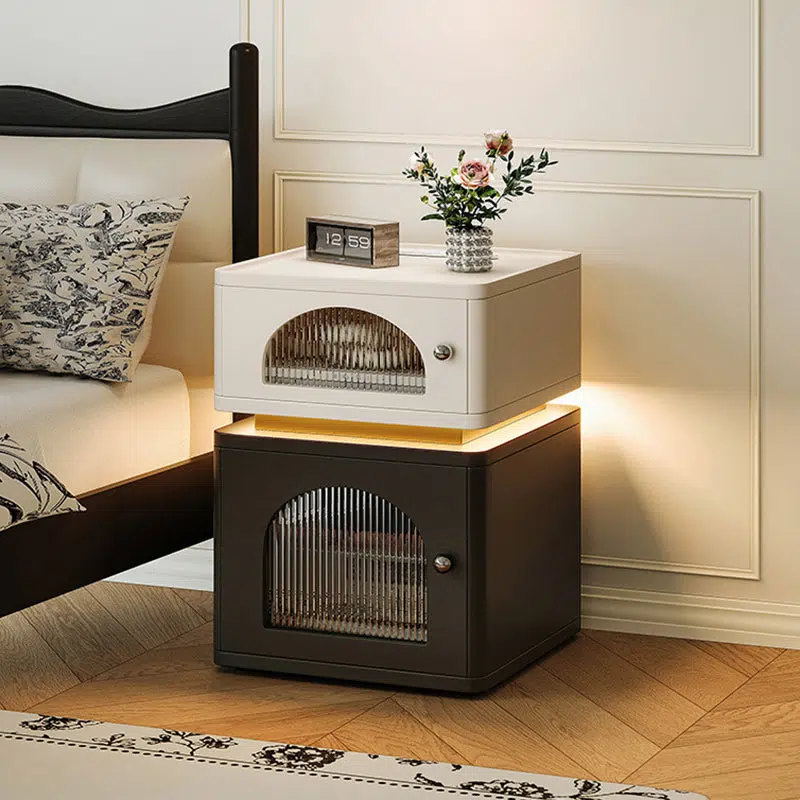 Contemporary Nordic Rectangle Cube Socket Light Strip Density Board Hardware Nightstand 2 – Cabinet For Bedroom