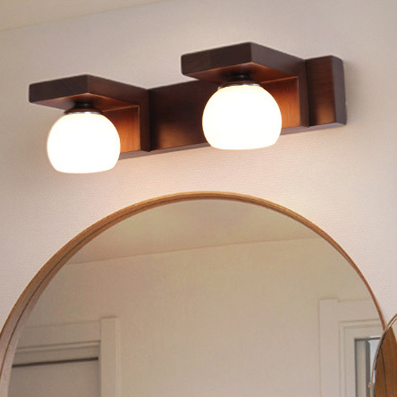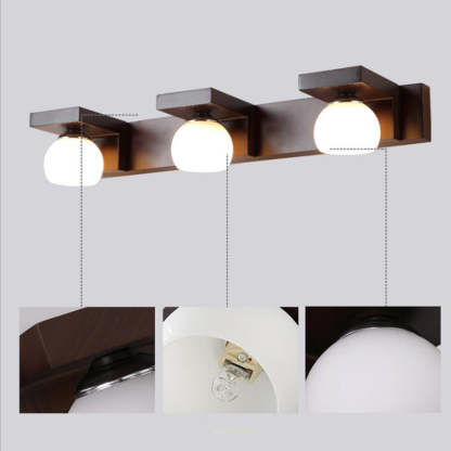 Contemporary Nordic Rectangle Solid Wood Glass 2/3 - Light Vanity Light Mirror Front Wall Sconce Lamp For Bathroom
