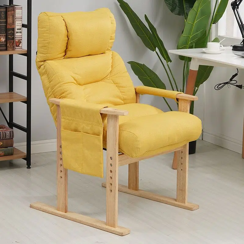 Contemporary Nordic Rectangular Fabric Wood Accent Chair Backrest Armrest For Living Room