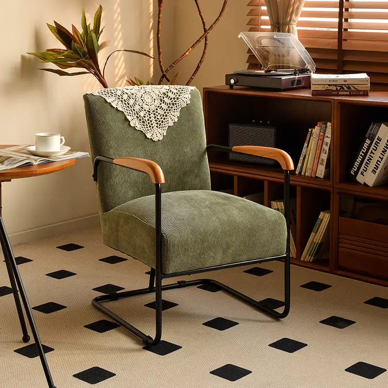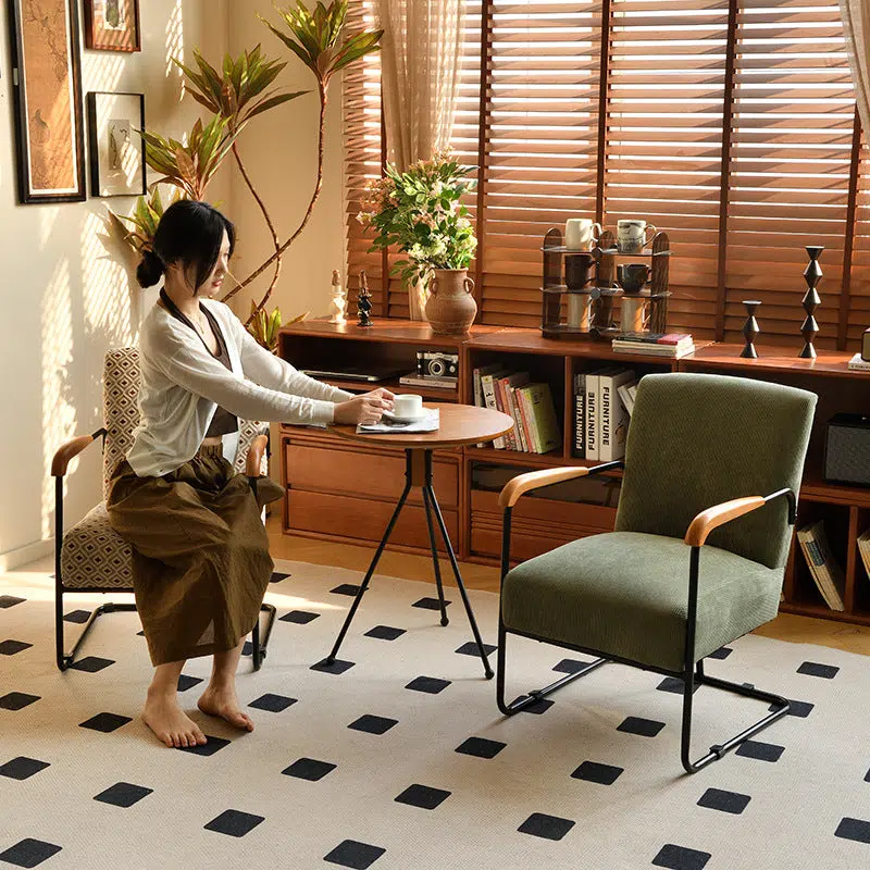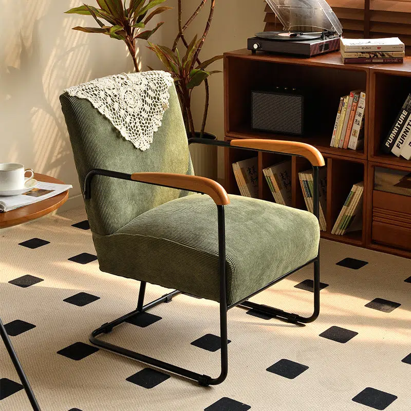 Contemporary Nordic Rectangular Iron Fabric Chair Backrest Armrest For Living Room
