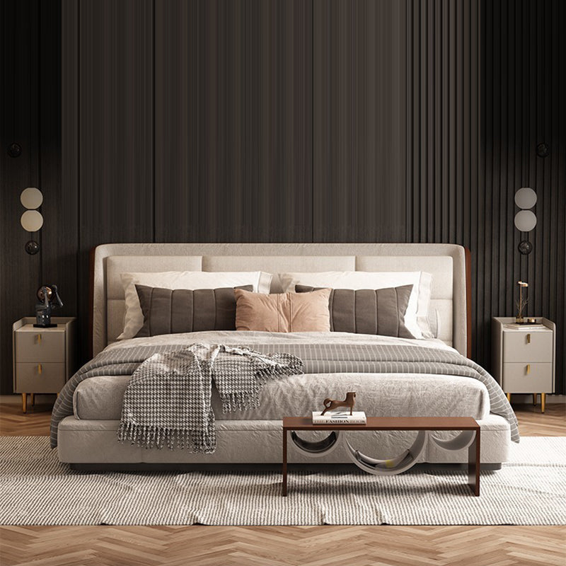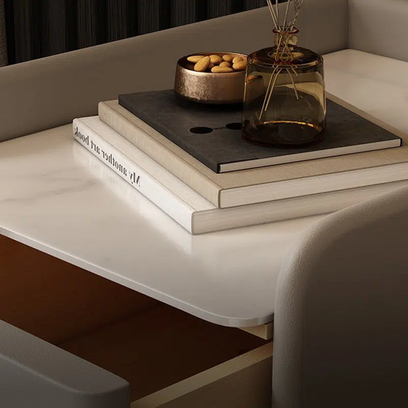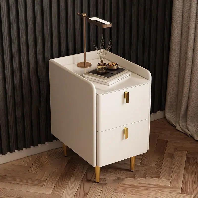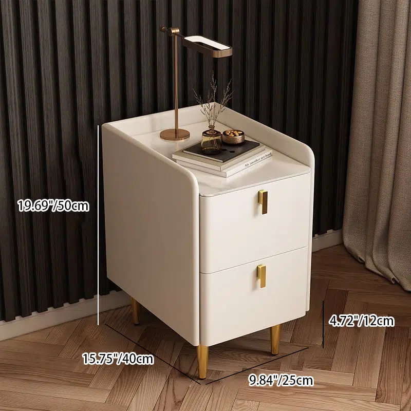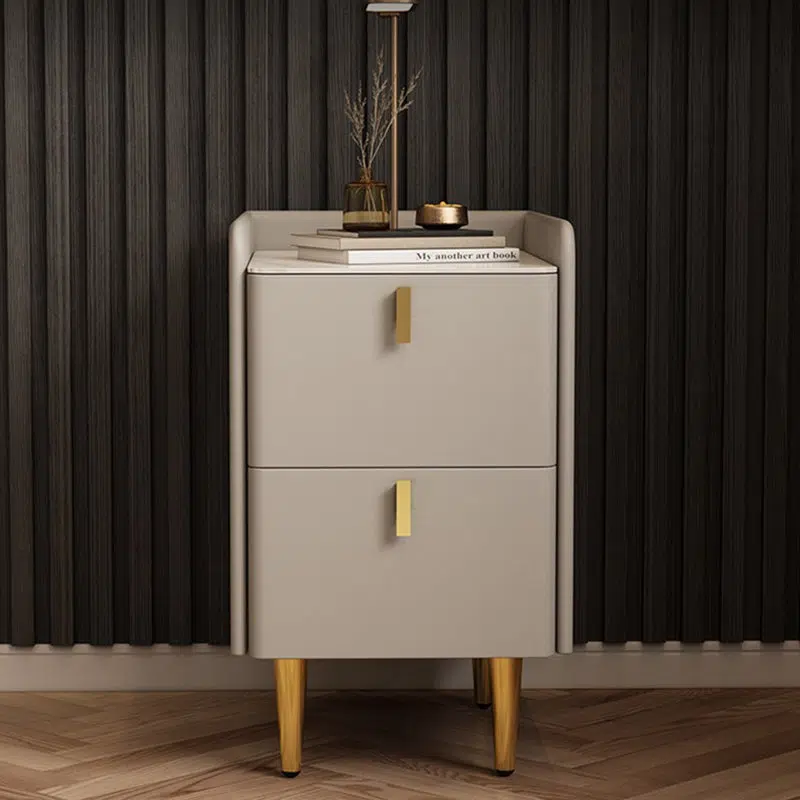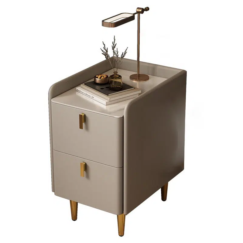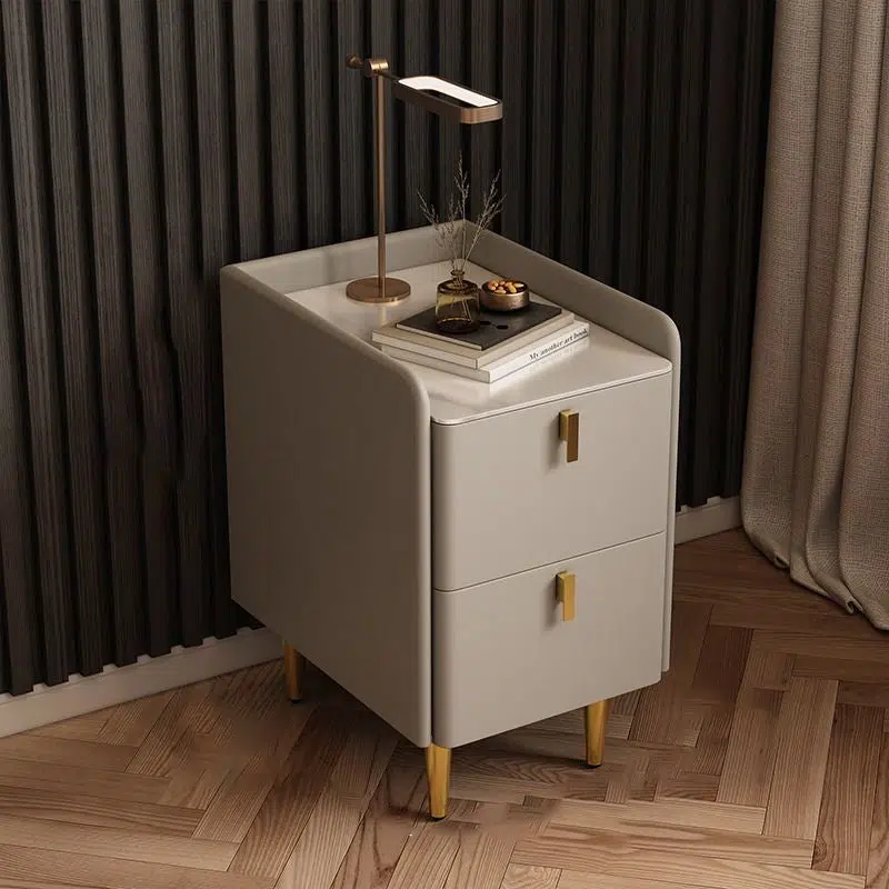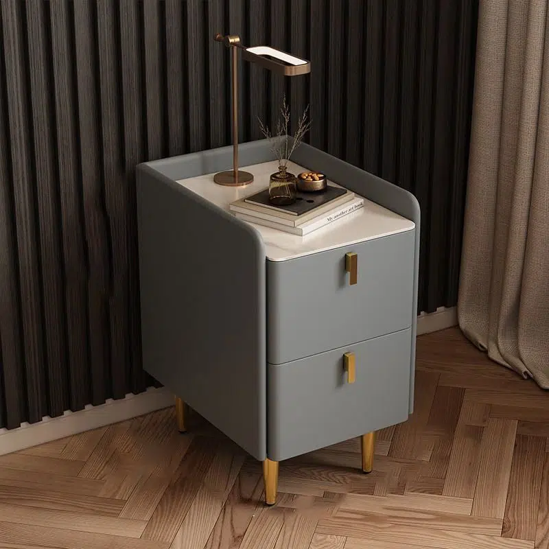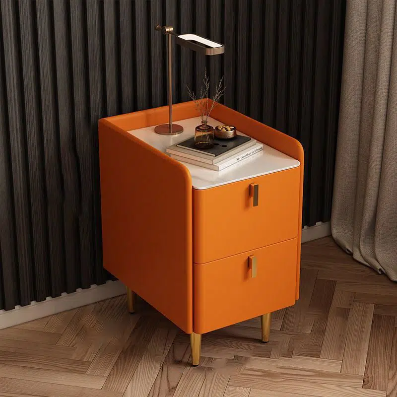 Contemporary Nordic Rectangular Microfiber Leather Solid Wood Carbon Steel Nightstand 2-Drawer For Bedroom