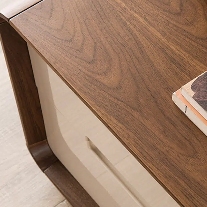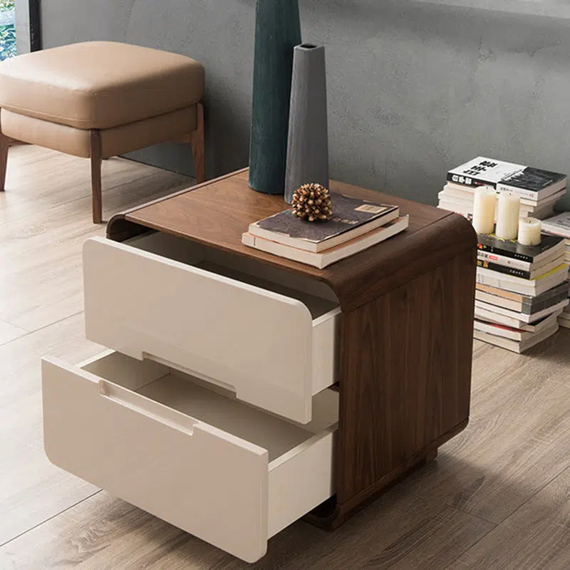 Contemporary Nordic Rectangular Rounded Corner Wood Grain Wood Density Panel Nightstand 2-Drawer For Bedroom