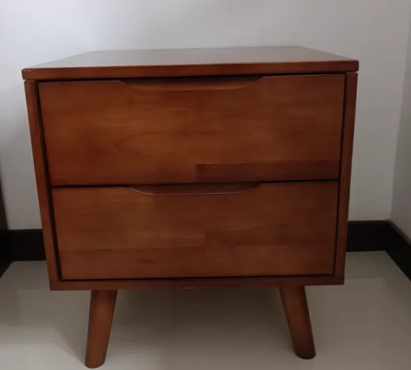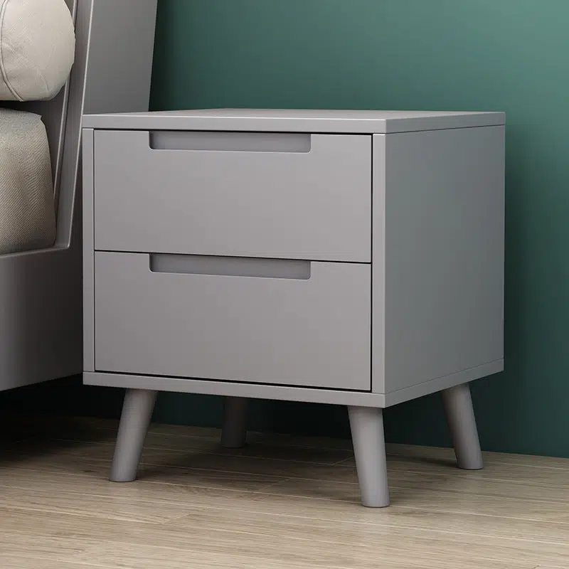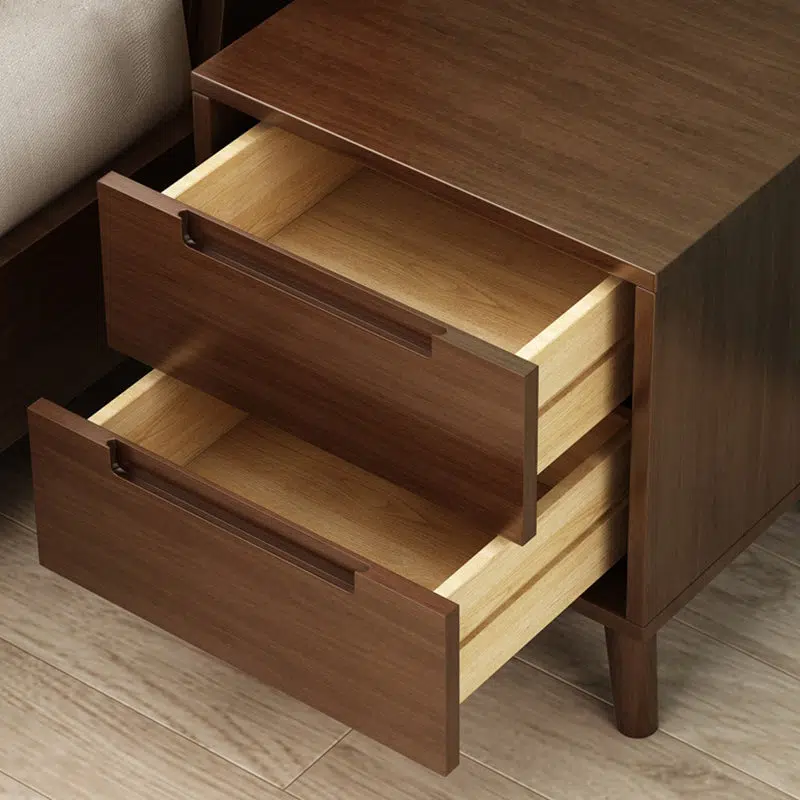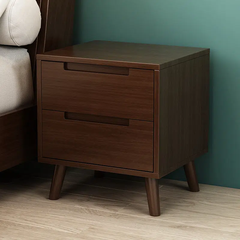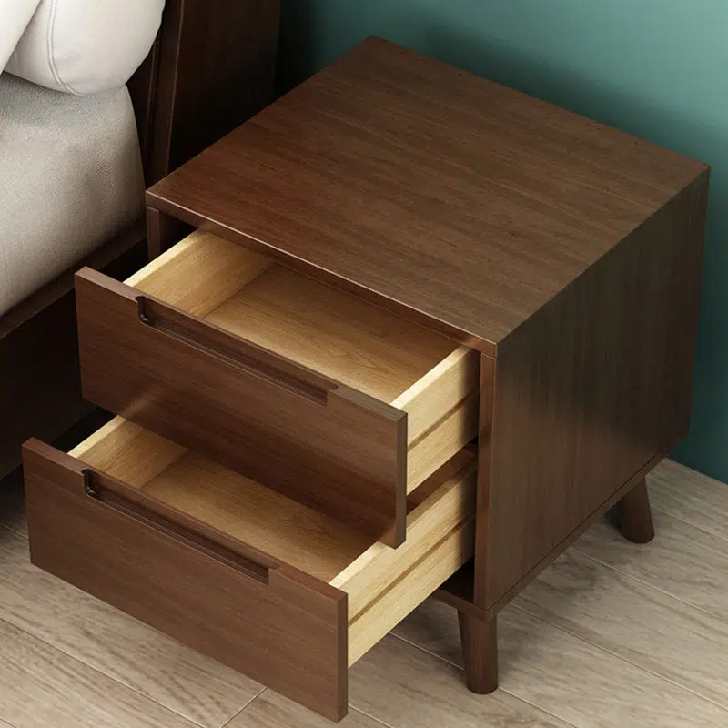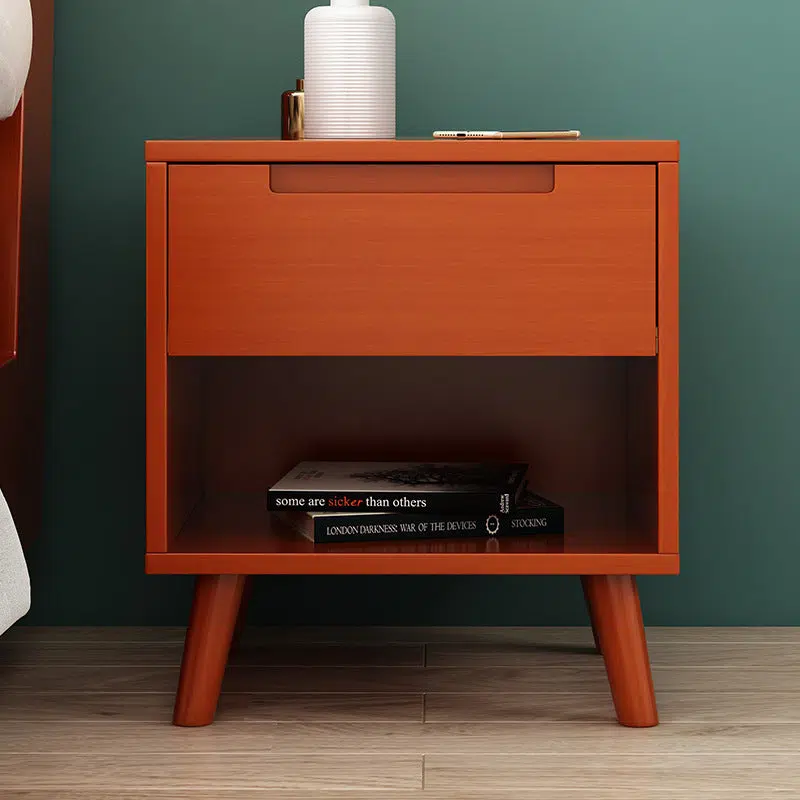 Contemporary Nordic Rectangular Solid Wood Nightstand 1/2 Drawer For Bedroom