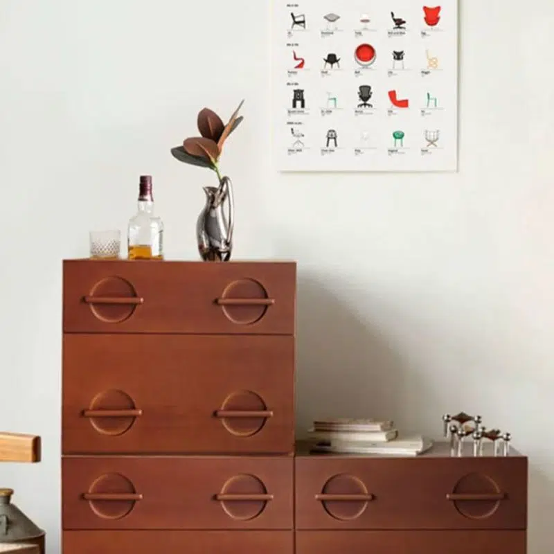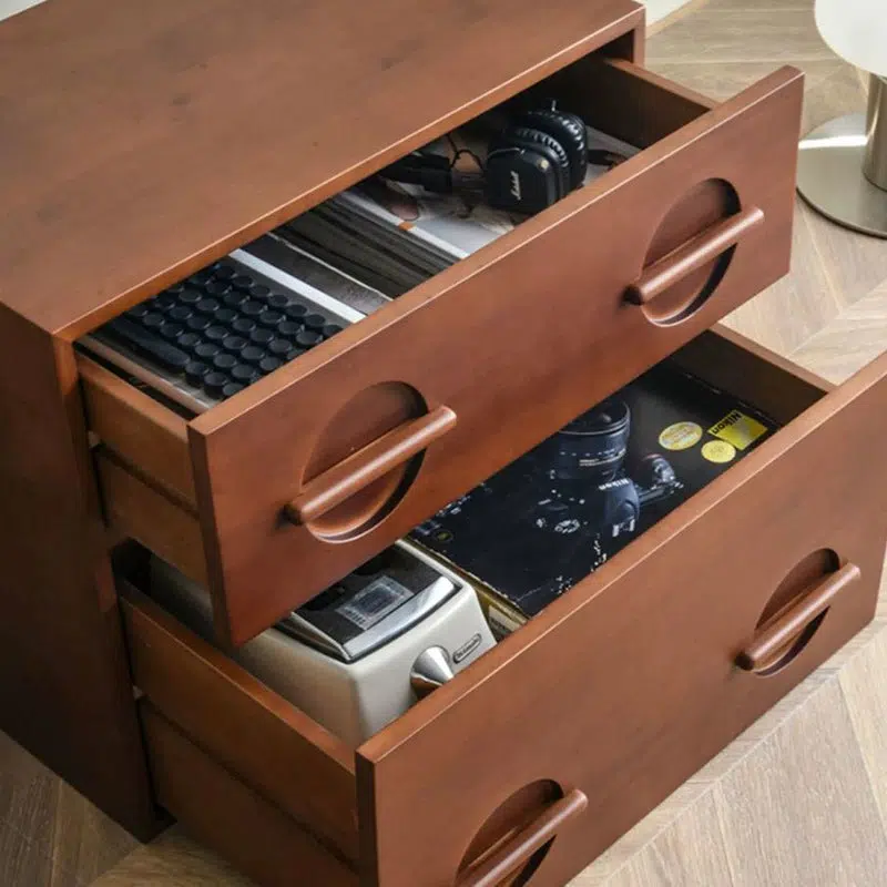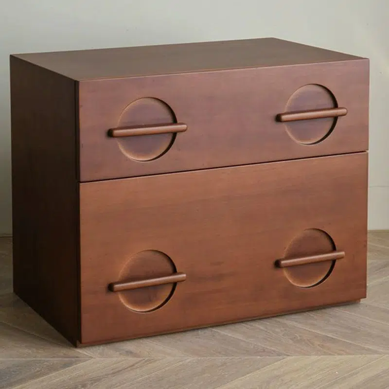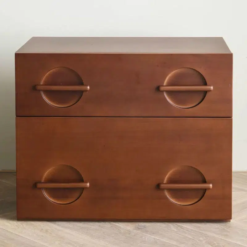 Contemporary Nordic Rectangular Solid Wood Nightstand 2-Drawer For Bedroom
