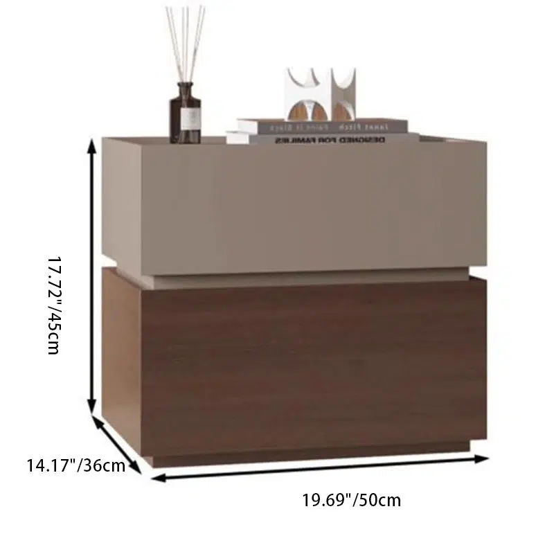 Contemporary Nordic Rectangular Stacked Oak Wood Nightstand 2-Drawer For Bedroom