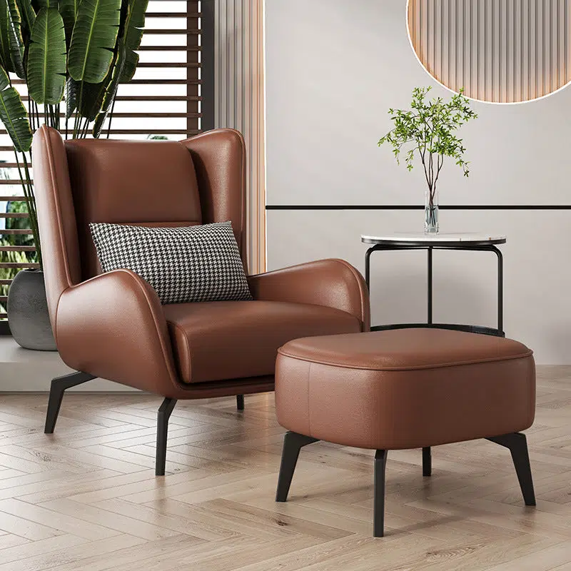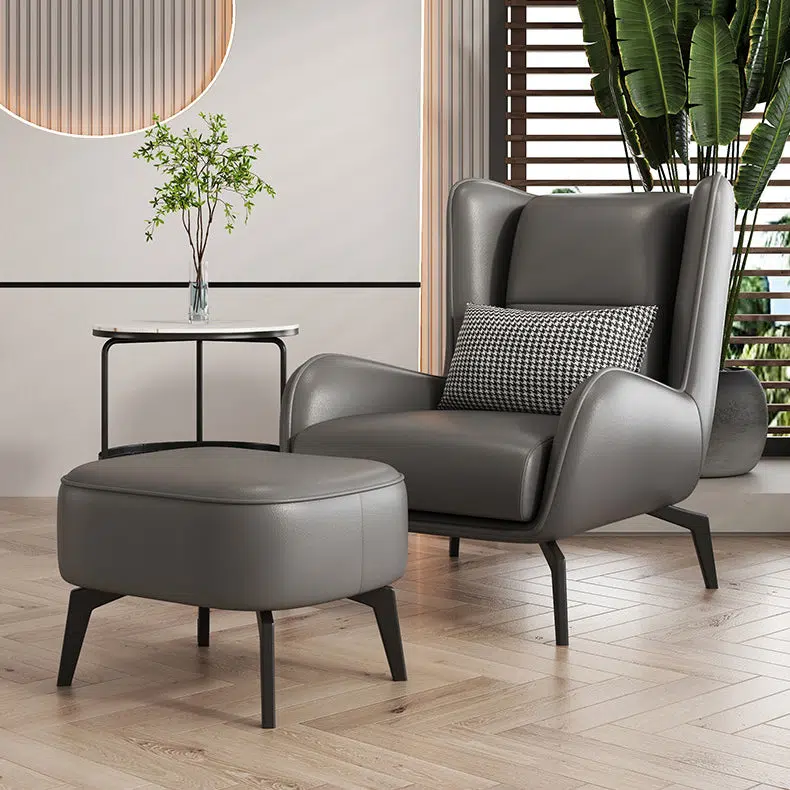 Contemporary Nordic Rectangular Technology Cloth PU Leather Upholstered Iron Accent Chair For Living Room